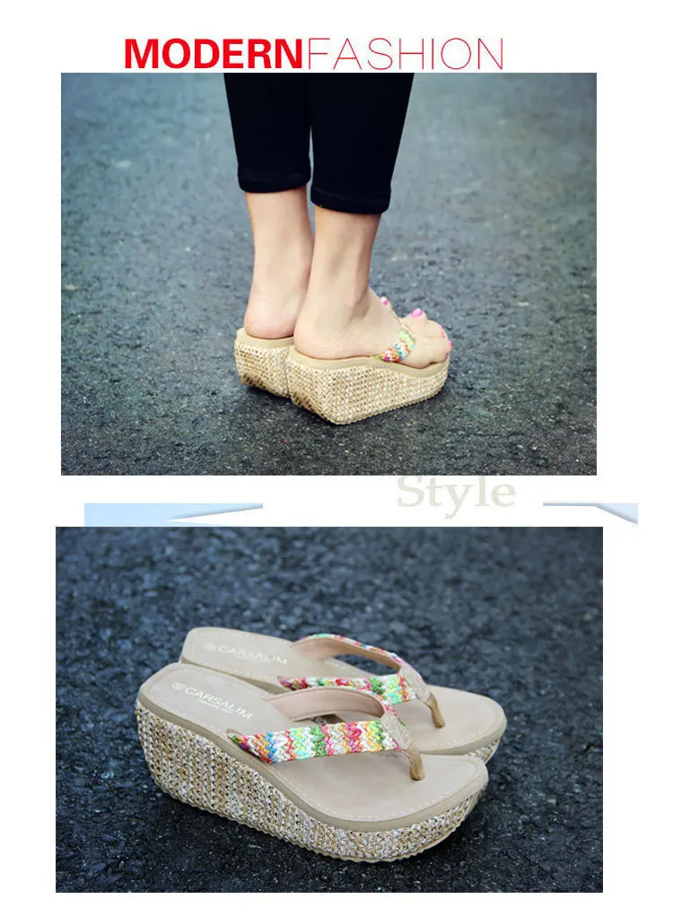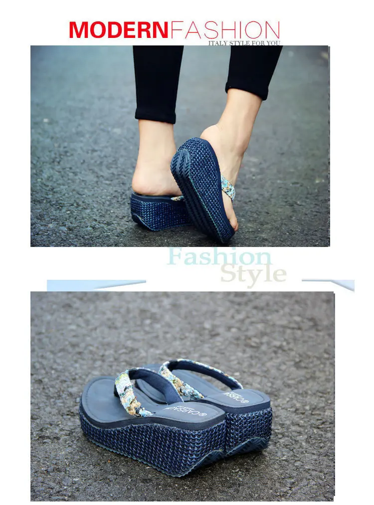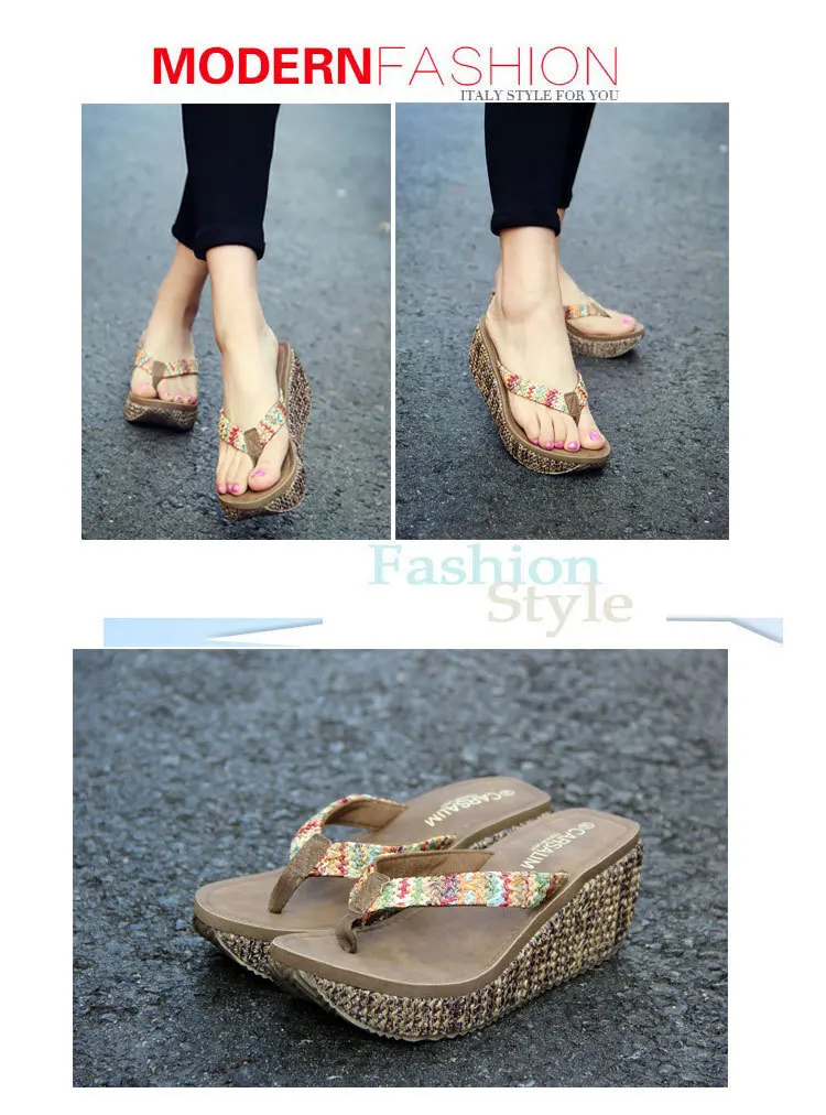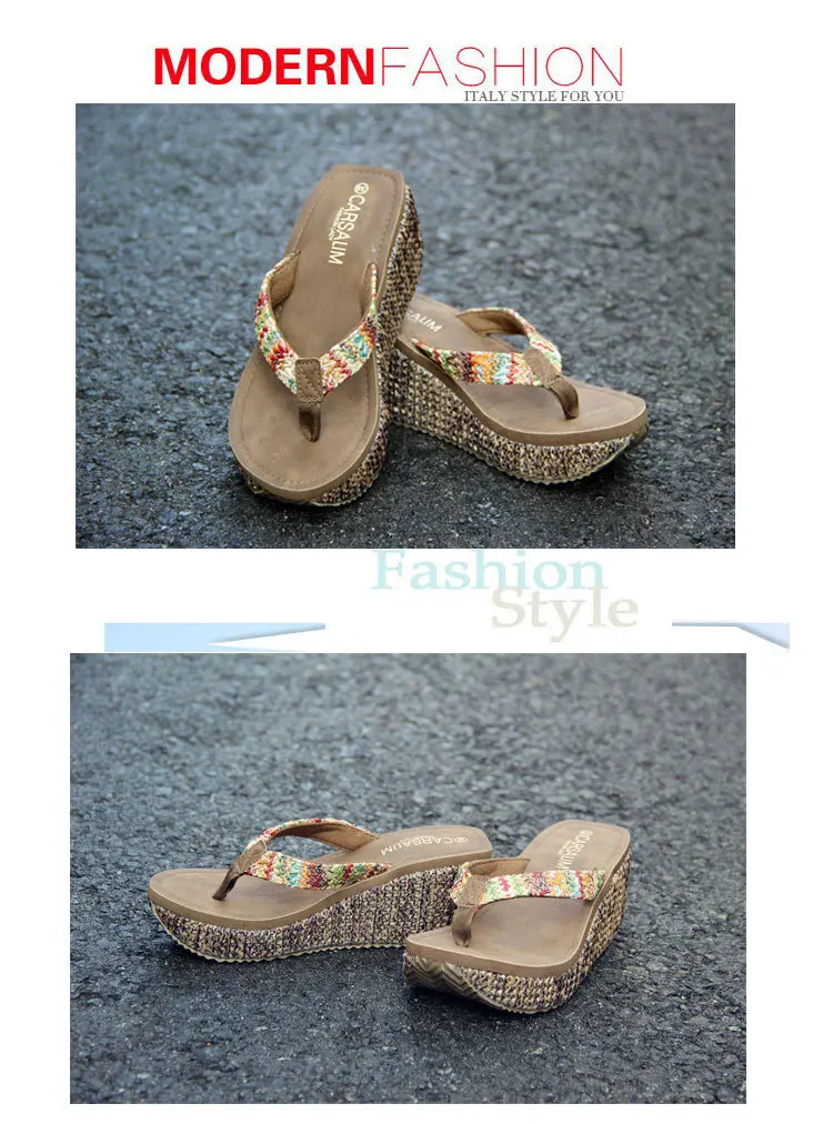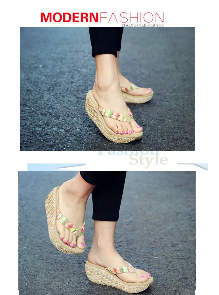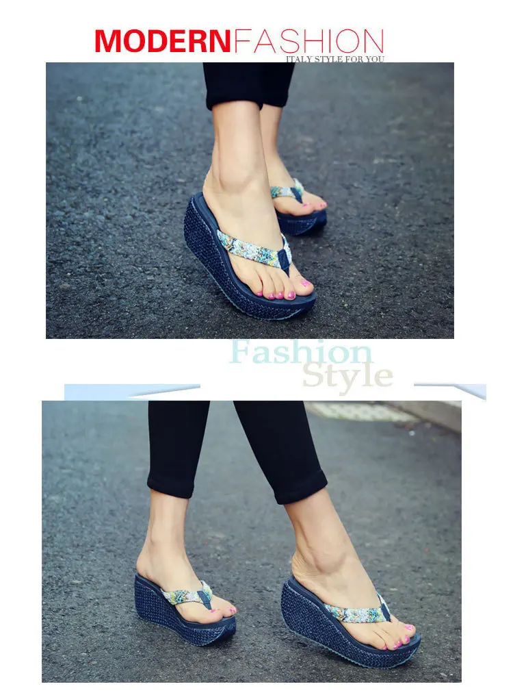 Beach Holiday Thick Platform Wedge Flip Flops Beach Shoes Women’s Slipper Women’s Summer Thick Soled Beach Antiskid Sandal