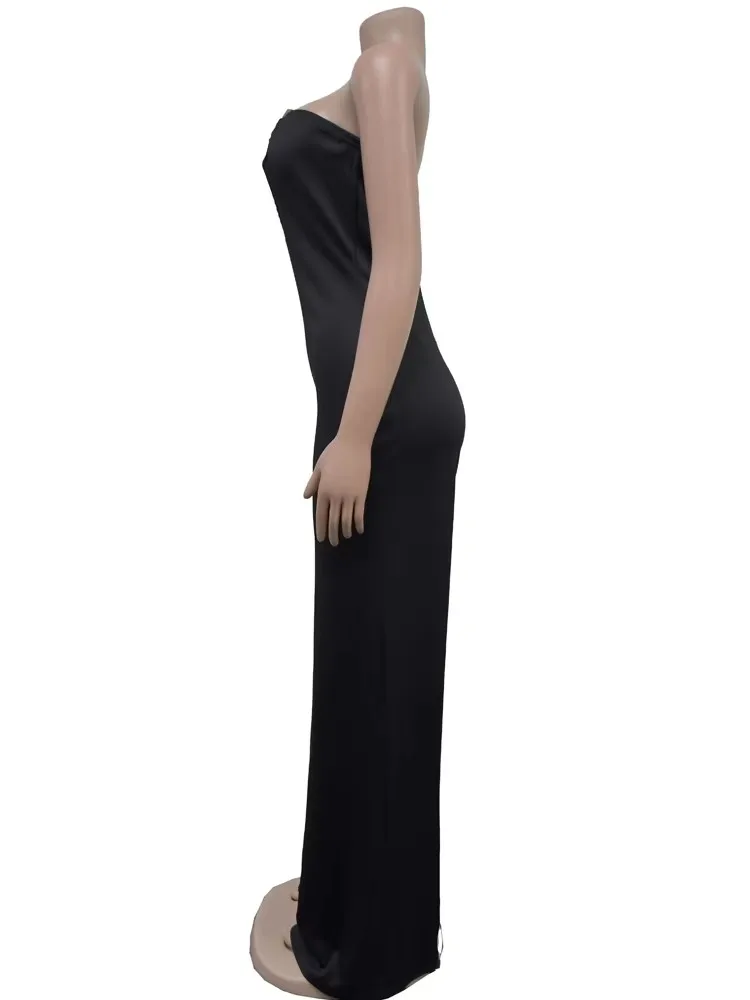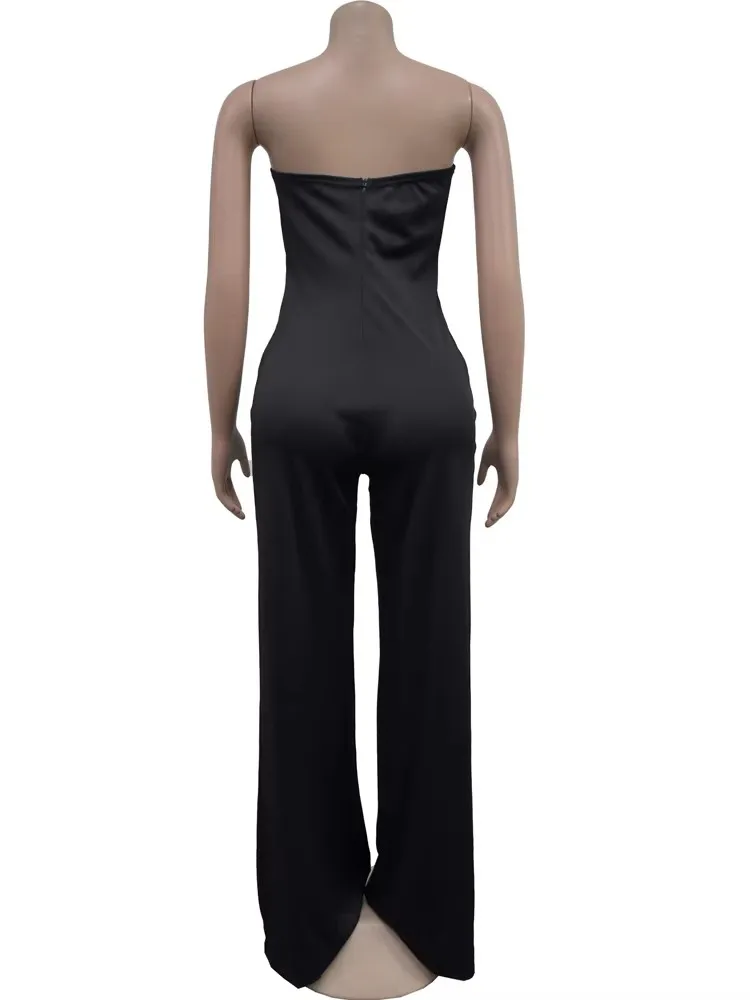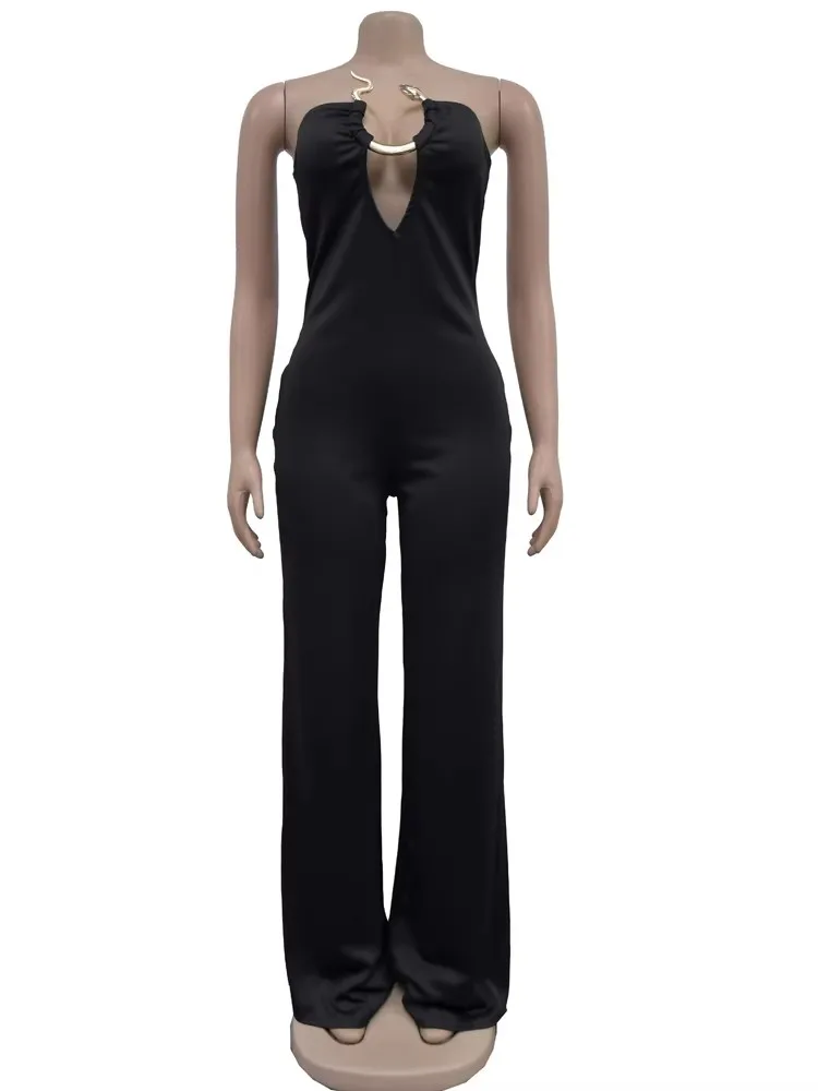 Beyprern Fashion Off Shoulder Snake Metal Jumpsuits One Piece Outfits Beautiful Strapless Hollow Out Wide Leg Rompers Overalls