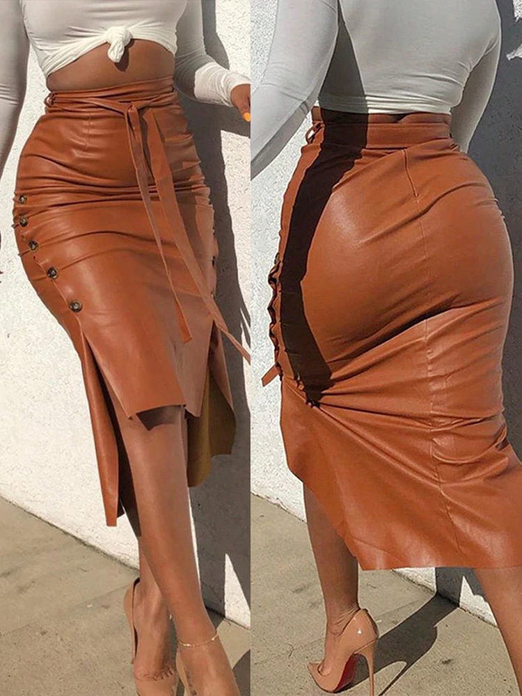 Bodycon Hip Wrap High Waist Long Skirts for Women Casual Lace-up Midi Skirt Woman Solid All Season Elegant Women’s Skirts