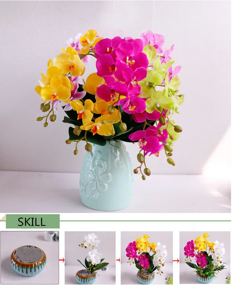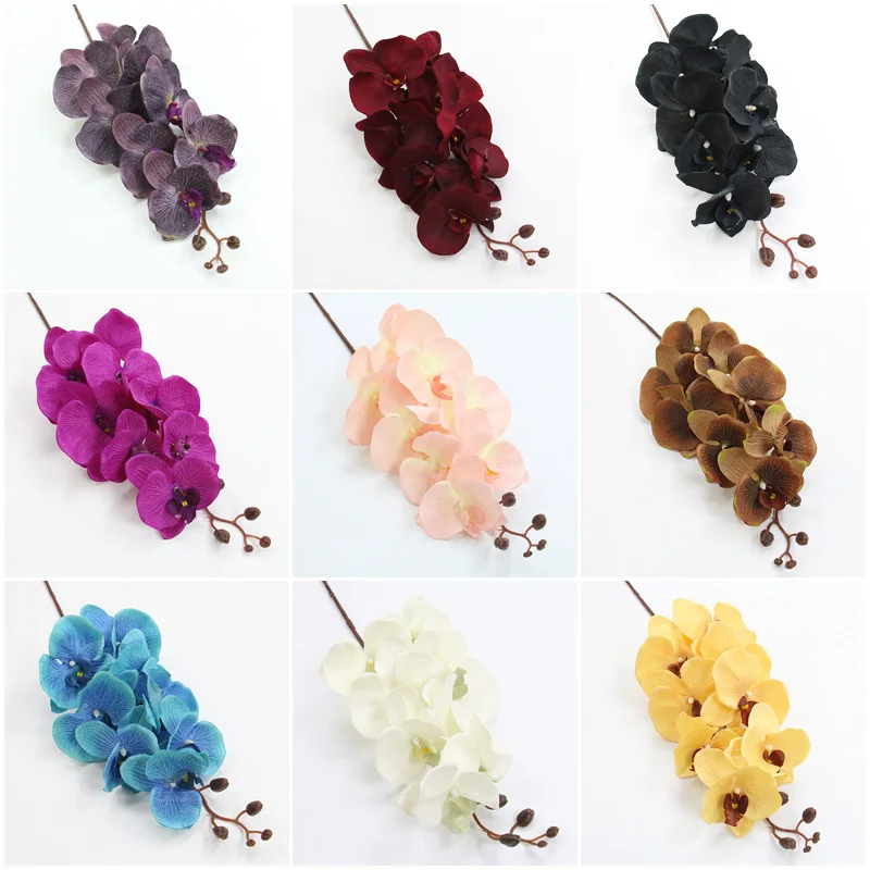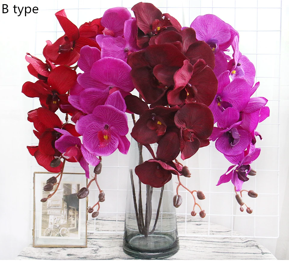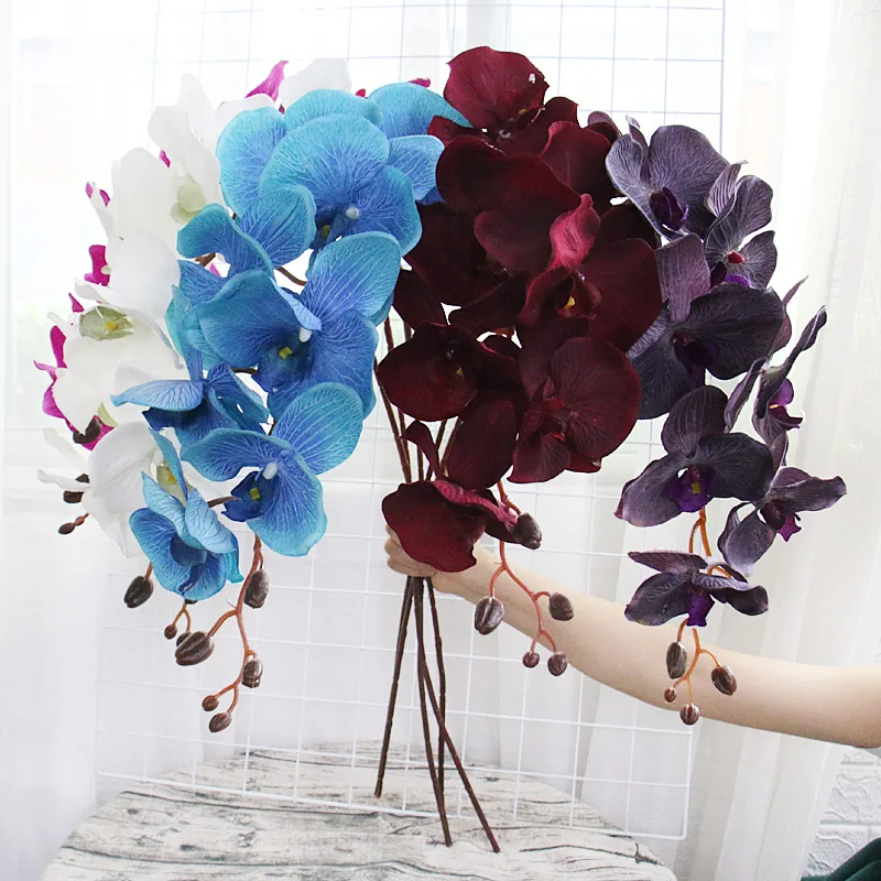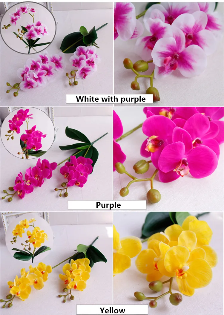 8 Heads 12 Heads Real Touch PU Butterfly Orchid With Leaf Artificial Flower Bouquet Home Hotel Decoration Store Decor Fake Flowers