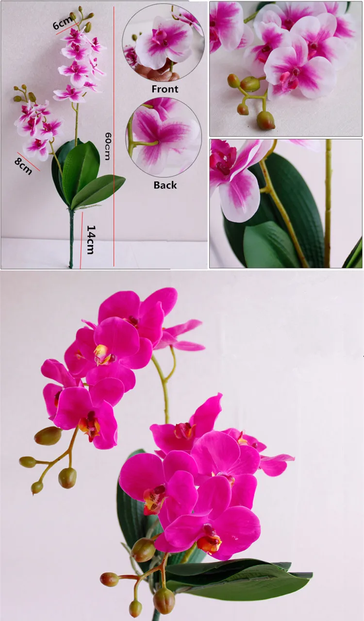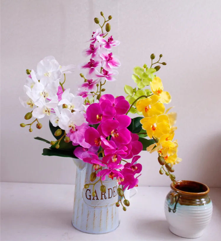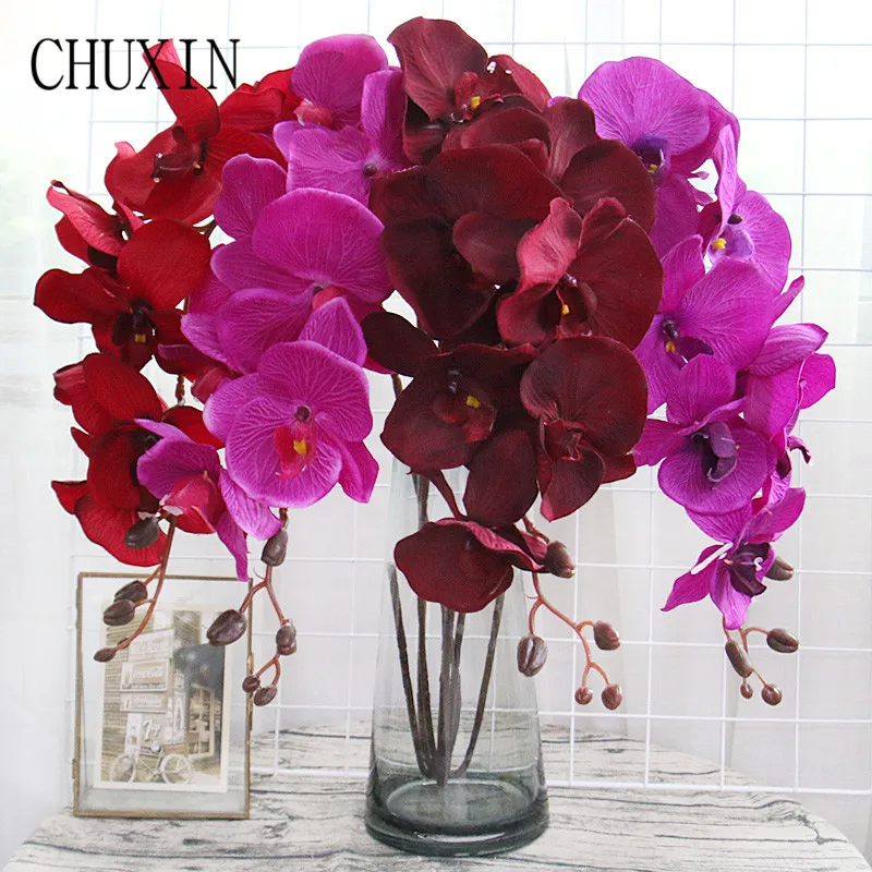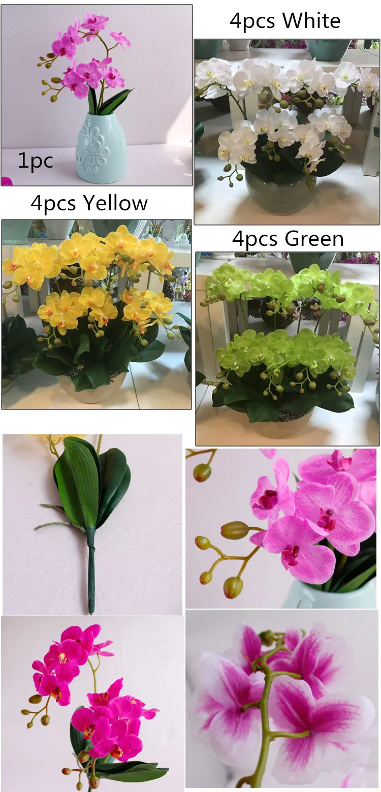 8 Heads 12 Heads Real Touch PU Butterfly Orchid With Leaf Artificial Flower Bouquet Home Hotel Decoration Store Decor Fake Flowers