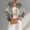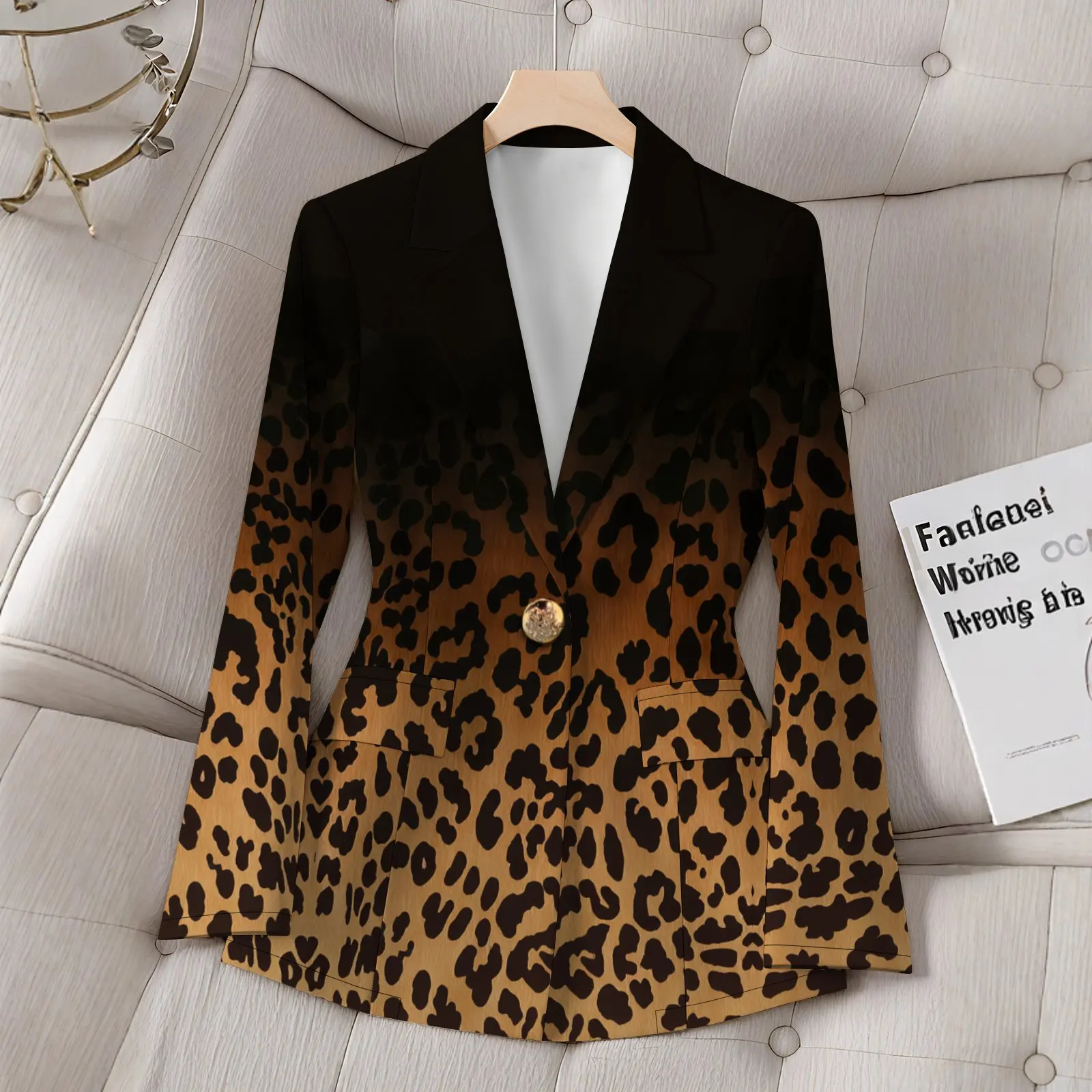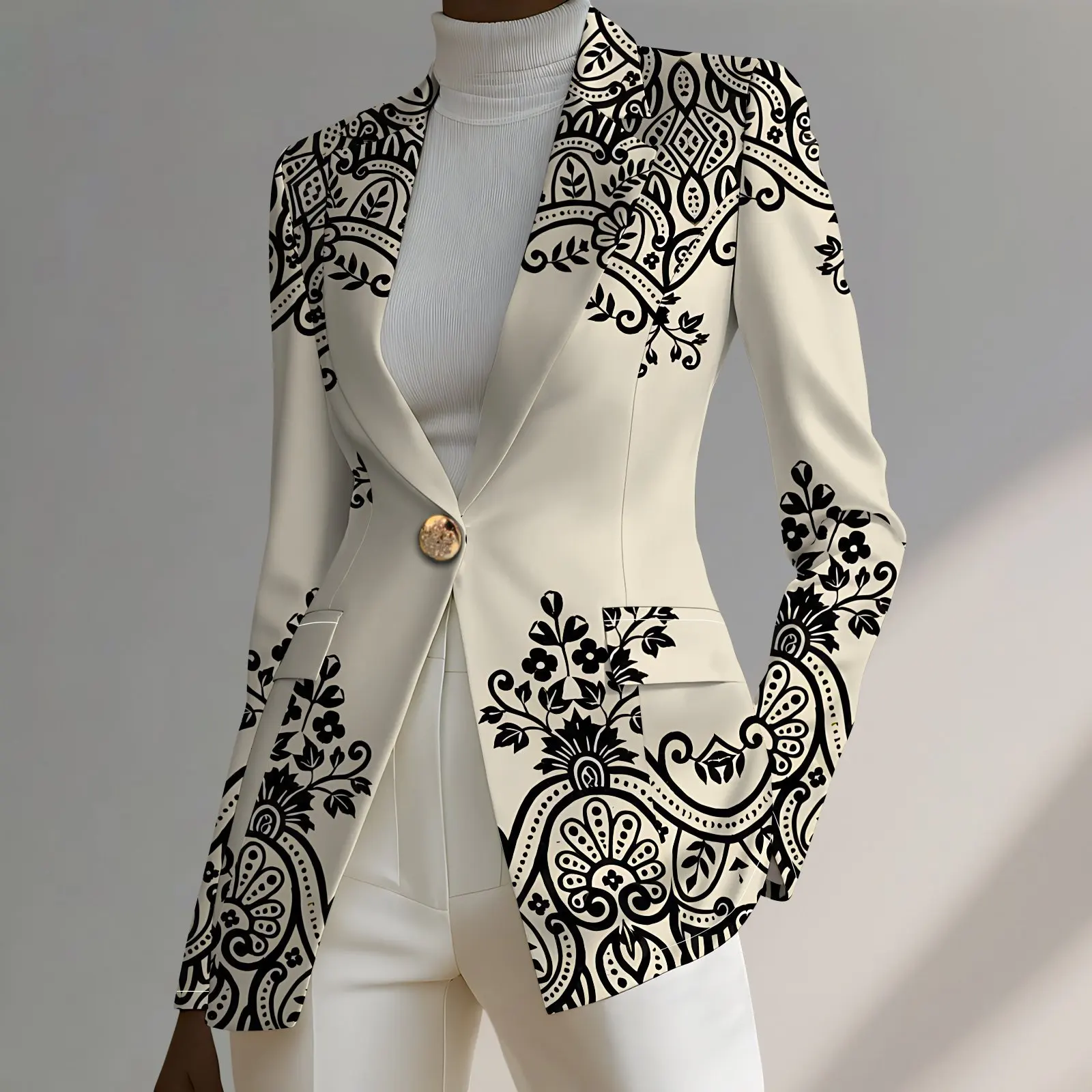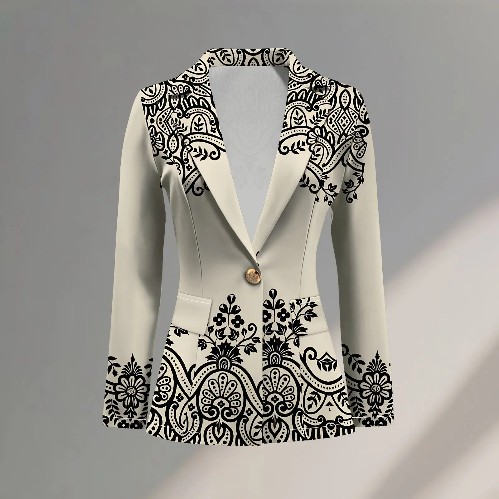 Casual Printed Blazer for Women – Knit Fabric Notch Lapel Jacket, Elegant Lightweight Outerwea r2026