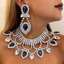 Colorful Rhinestonewater Drop Round Flower Necklaces for Women Vintage Advanced Collar Chains Aesthetic Dainty Jewelry Wholesale
