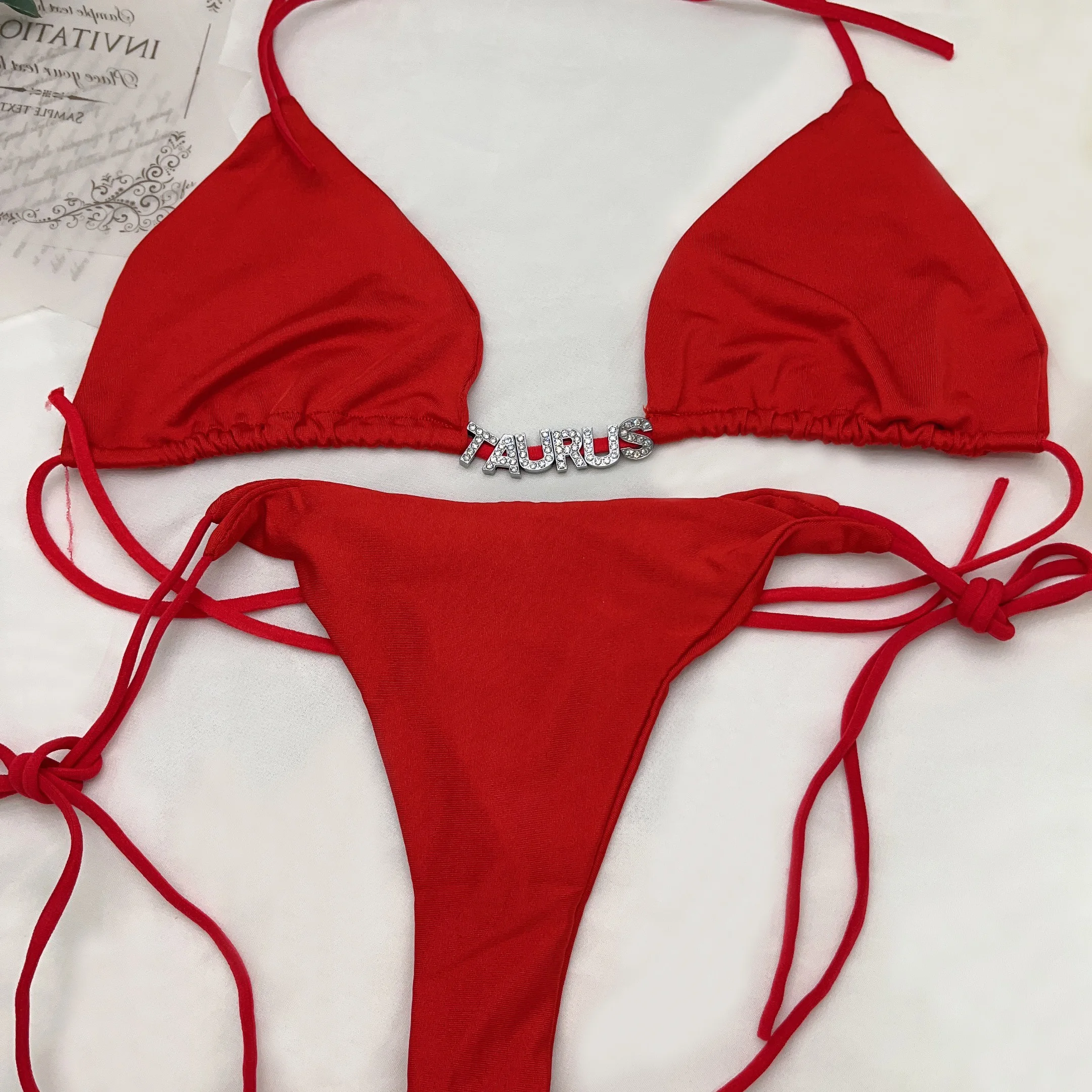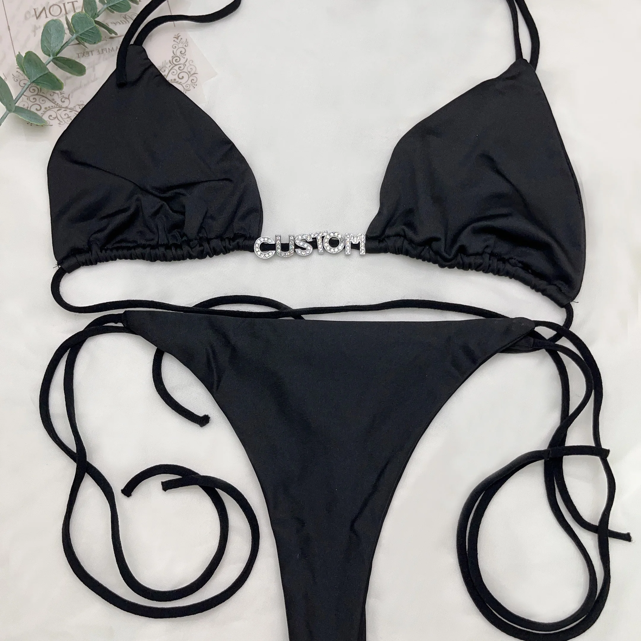 Custom Sexy Women Bikini Swimsuit Crystal Name Thong Personality Panties String Hotwife Lingerie Underwear Customize Gifts