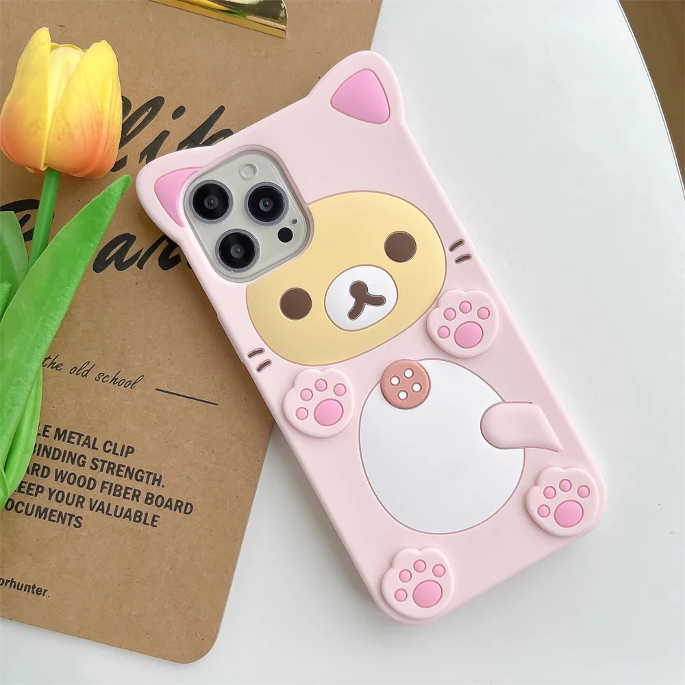Cute Cartoon 3D Rilakkuma Phone Case For iPhone 1716 15 14 13 12 11 Pro X XS Max XR 6 7 8 Plus 4 4S 5 5S SE Soft Silicone Cover