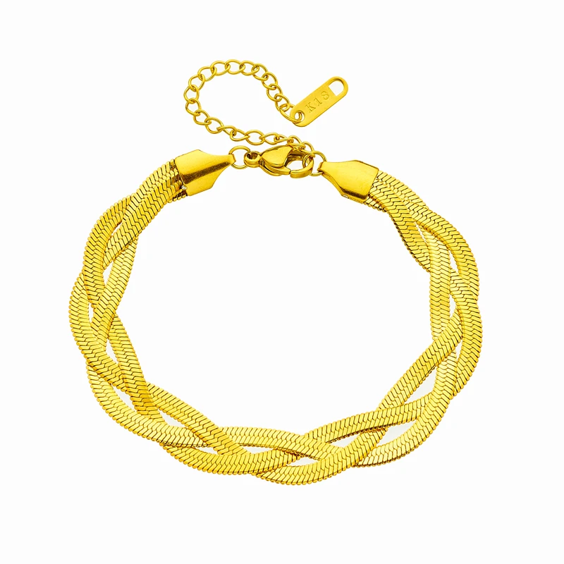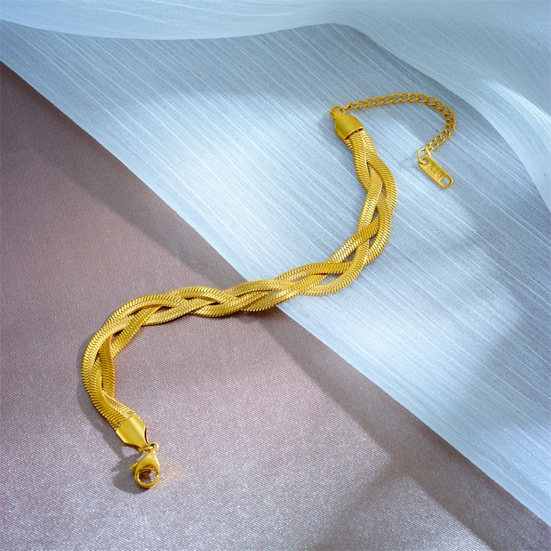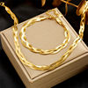 DIEYURO 316L Stainless Steel Golden 3in1 Crossover Snake Chain Necklace Bracelet For Womens New Fashion Waterproof Jewelry Set
