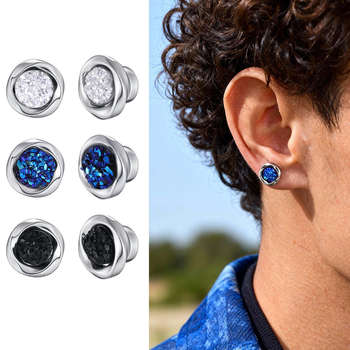Broken Zircon Magnetic Clip Earrings for Men Women,Mobius Circle Metal Round No Piercing Earrings Gift