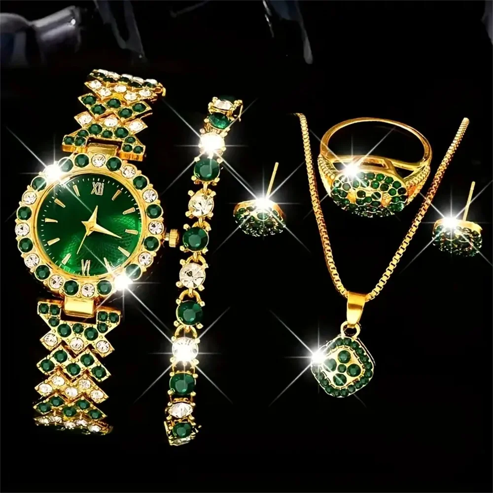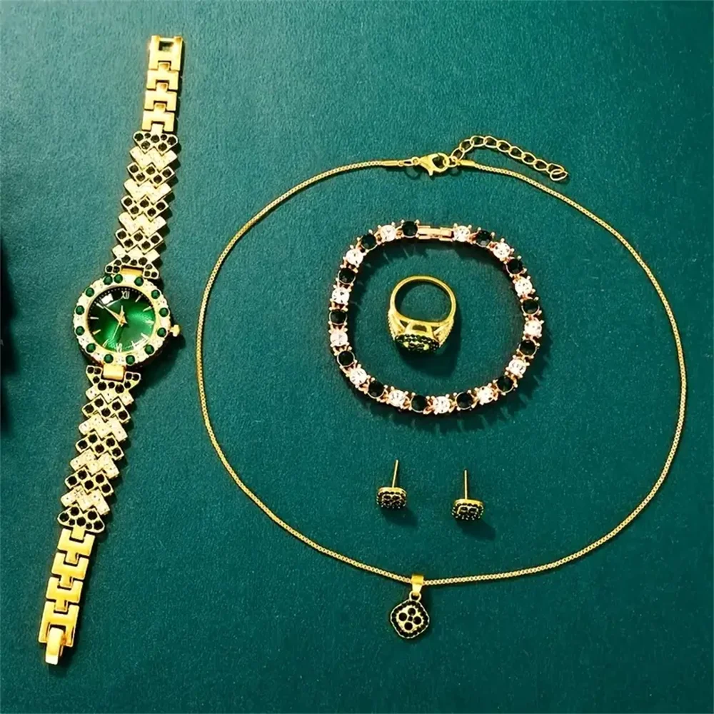 Elegant 6-piece women’s watch set – Quartz movement, square case, zinc alloy strap, timer function – ideal gift for Valentine’s