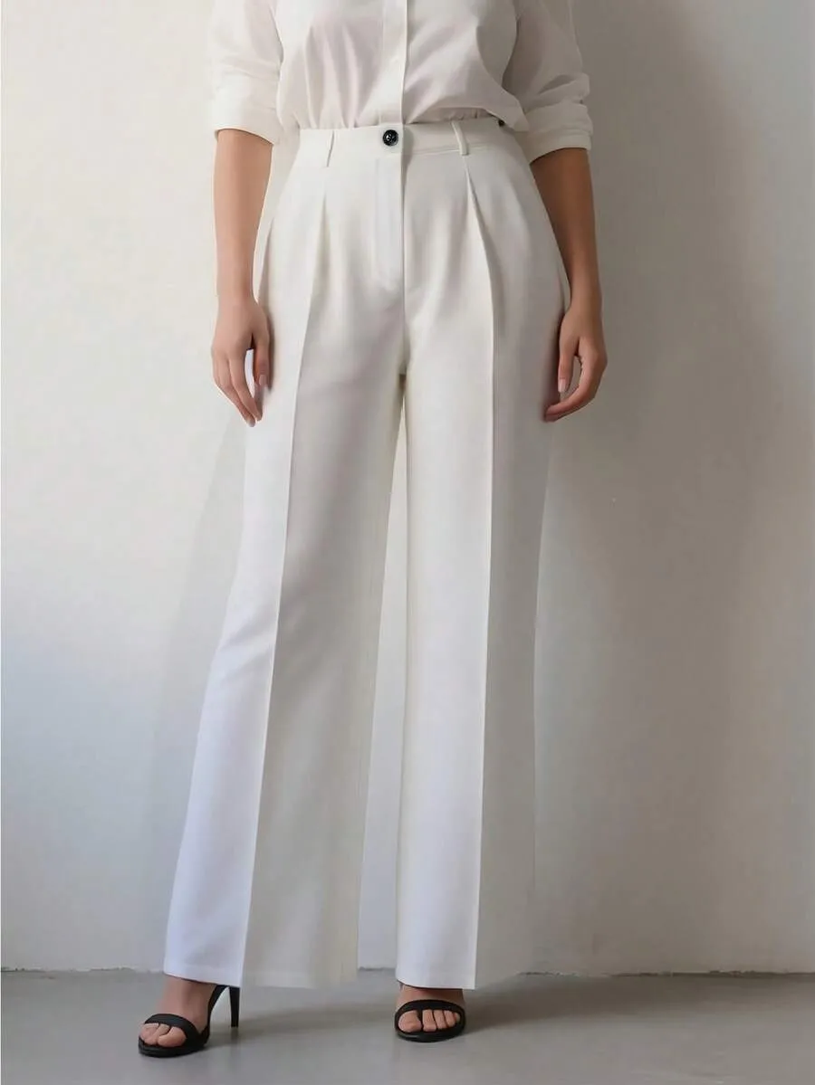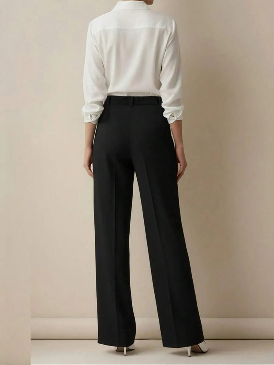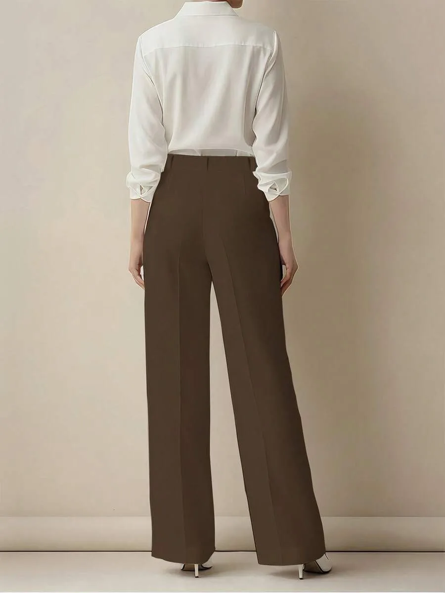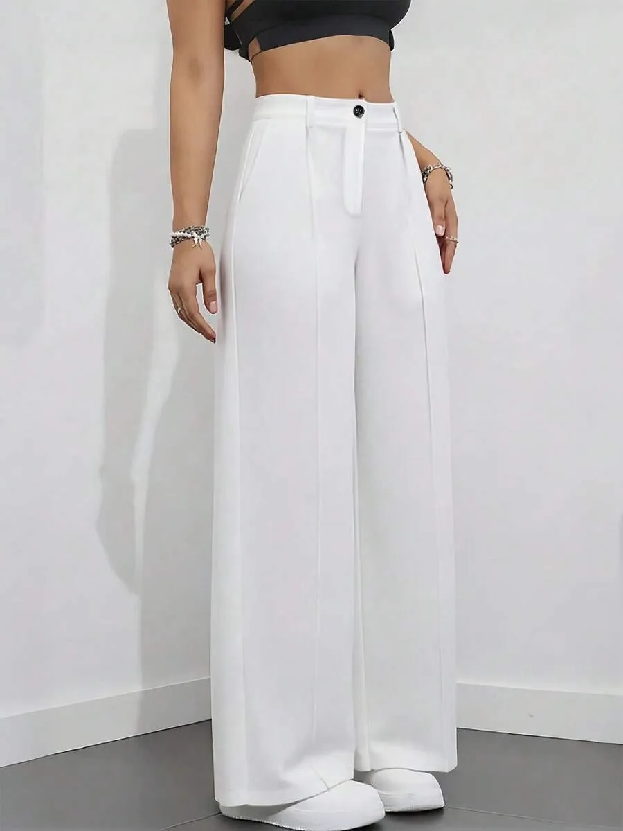 European and American cross-border spring and autumn fashion solid color casual high-waist loose work trousers with pockets