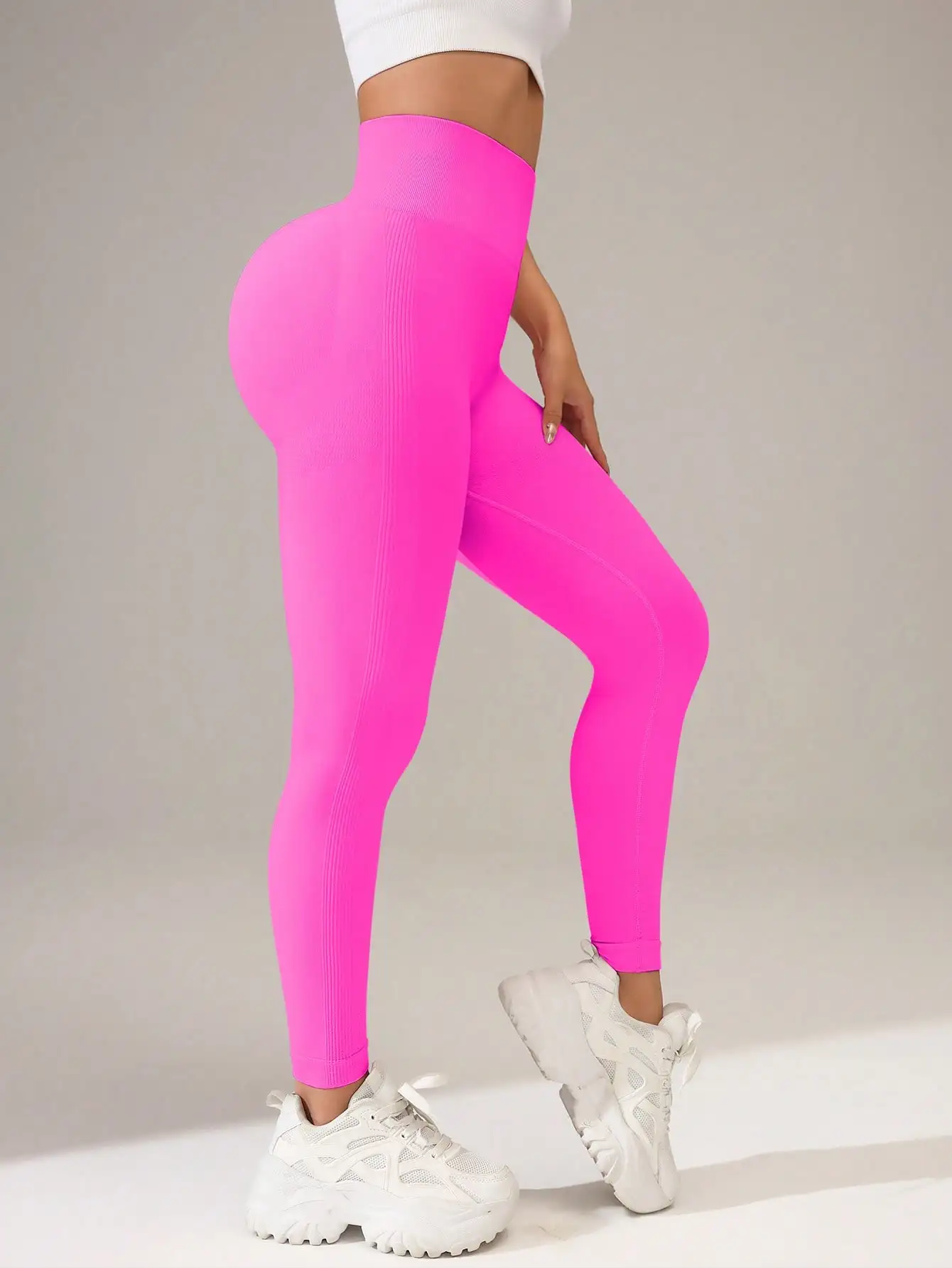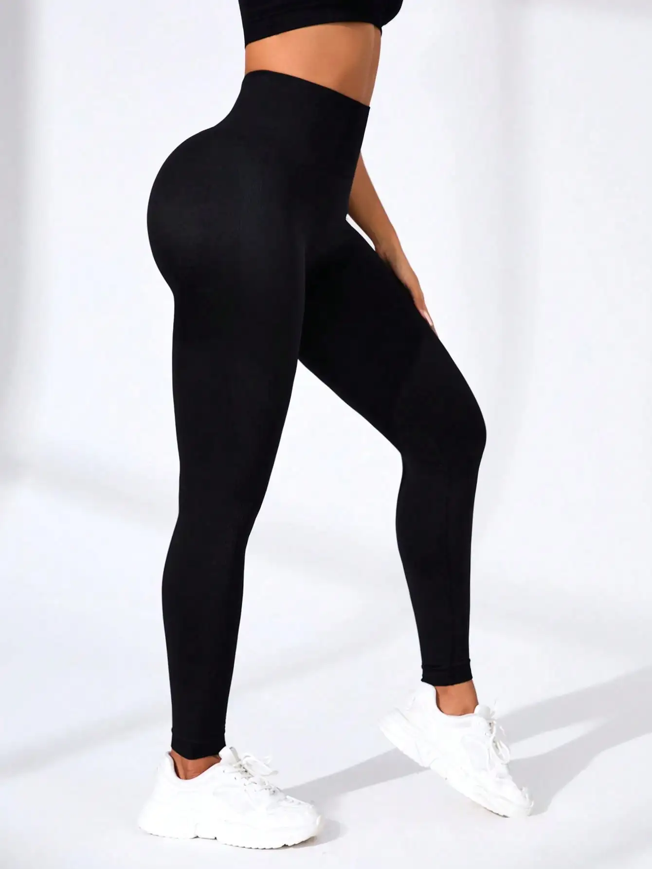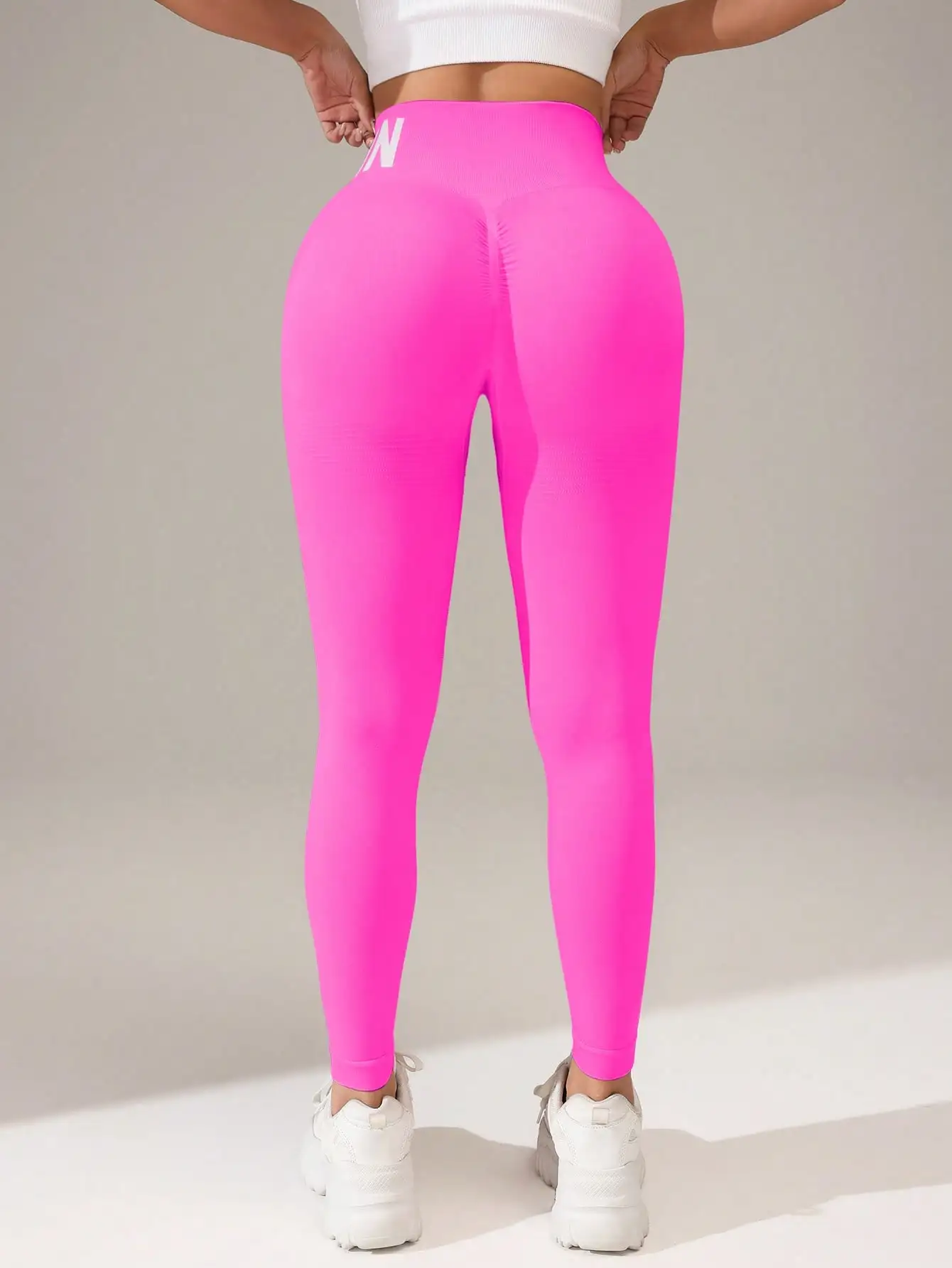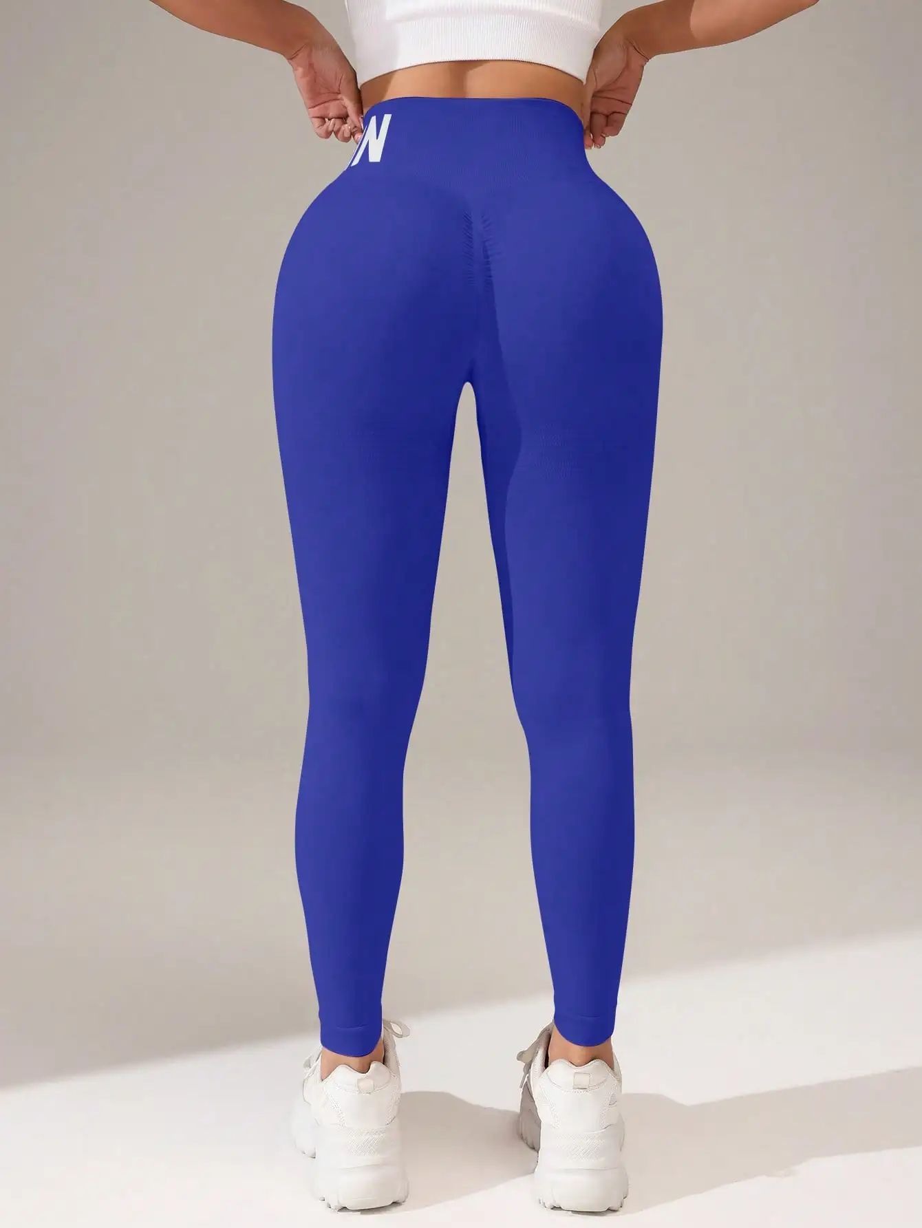 European and American Seamless Yoga Leggings with Waistband Lettering, Butt-Lifting, Quick-Dry Women’s Breathable Tights for Pea