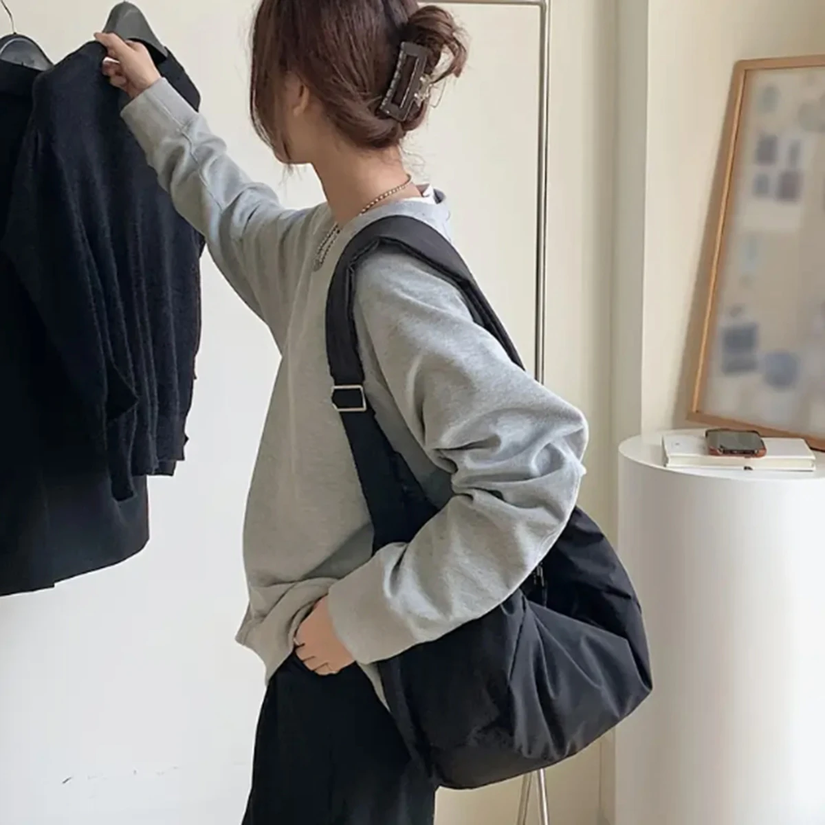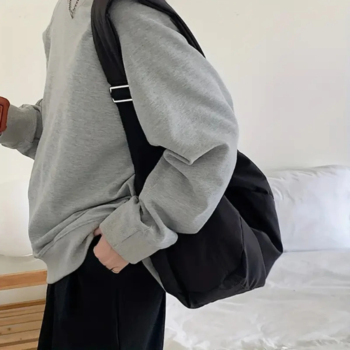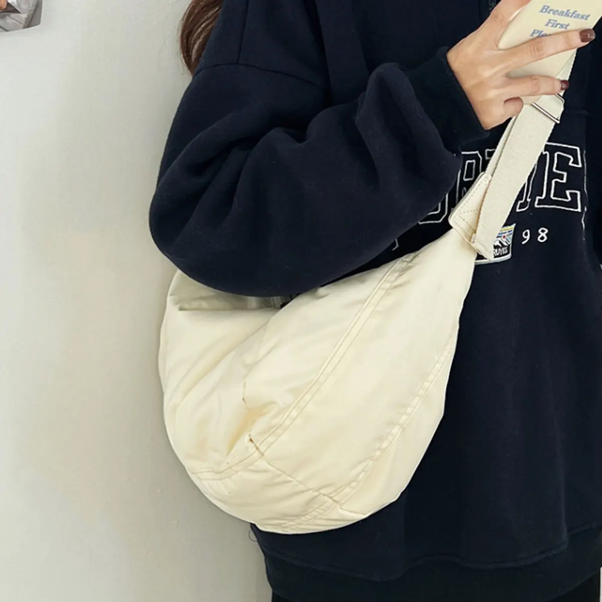 Fashion canvas down crossbody bag winter new large capacity dumpling bag down cotton casual simple shoulder bag 1
