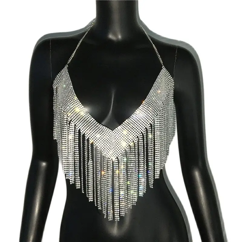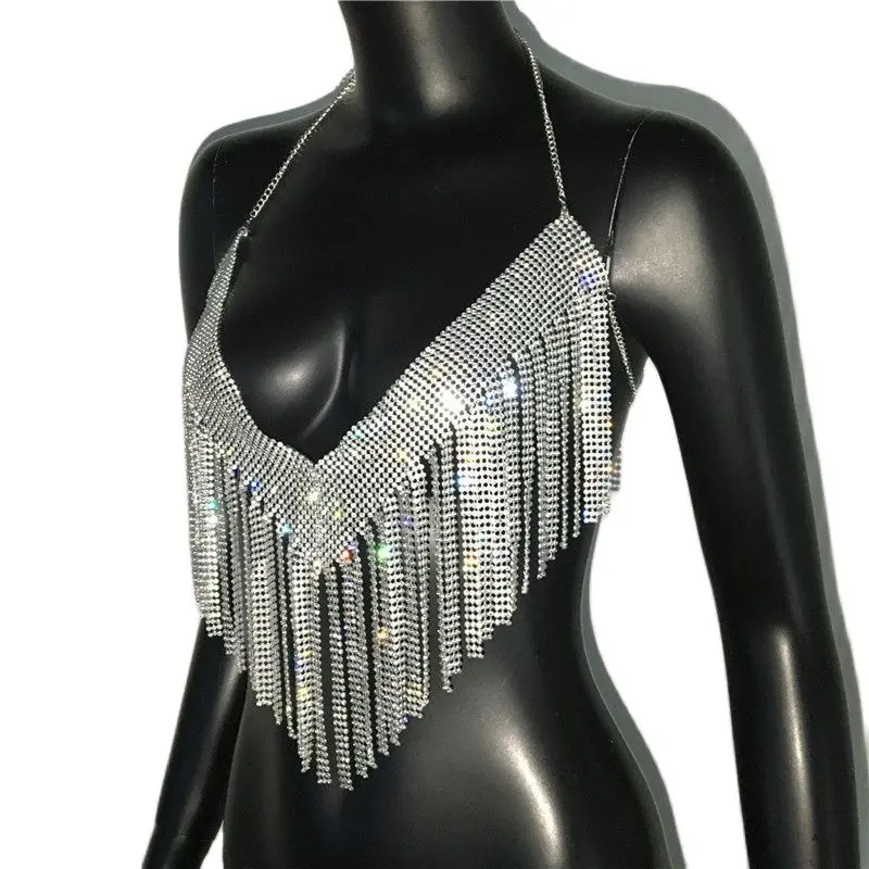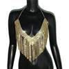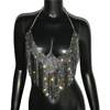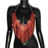 Bling Rhinestones Tassel Party Crop Top Woman Fashion Halter Neck Backless Design Full Diamond Sequins Party Clubwear
