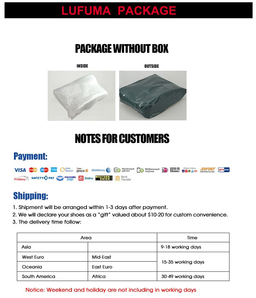 1.Please choose size according to foot length, (Don’t choose size according to your country usual size !!!)