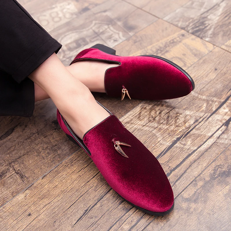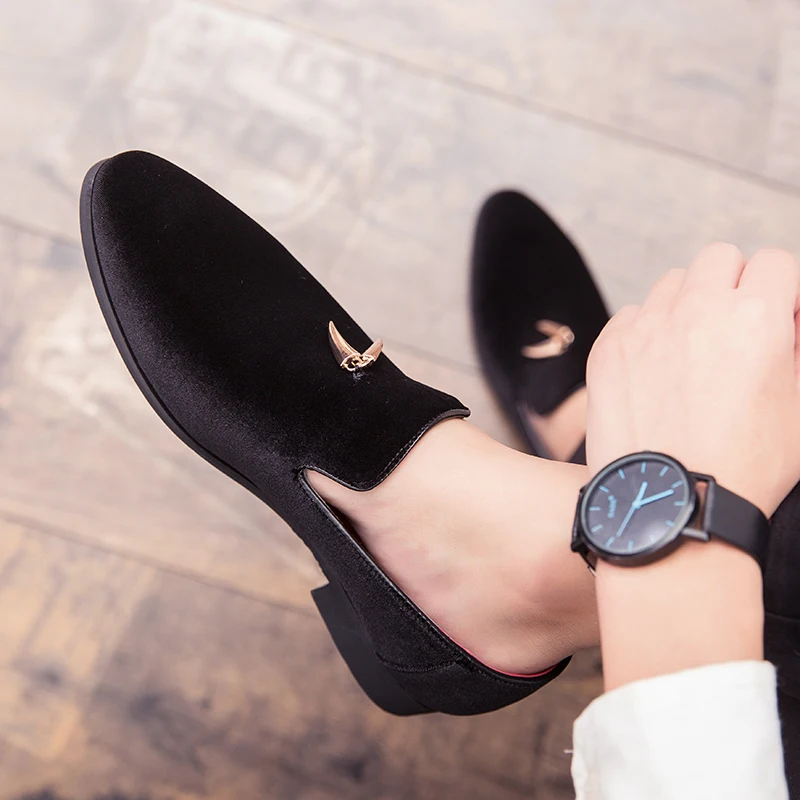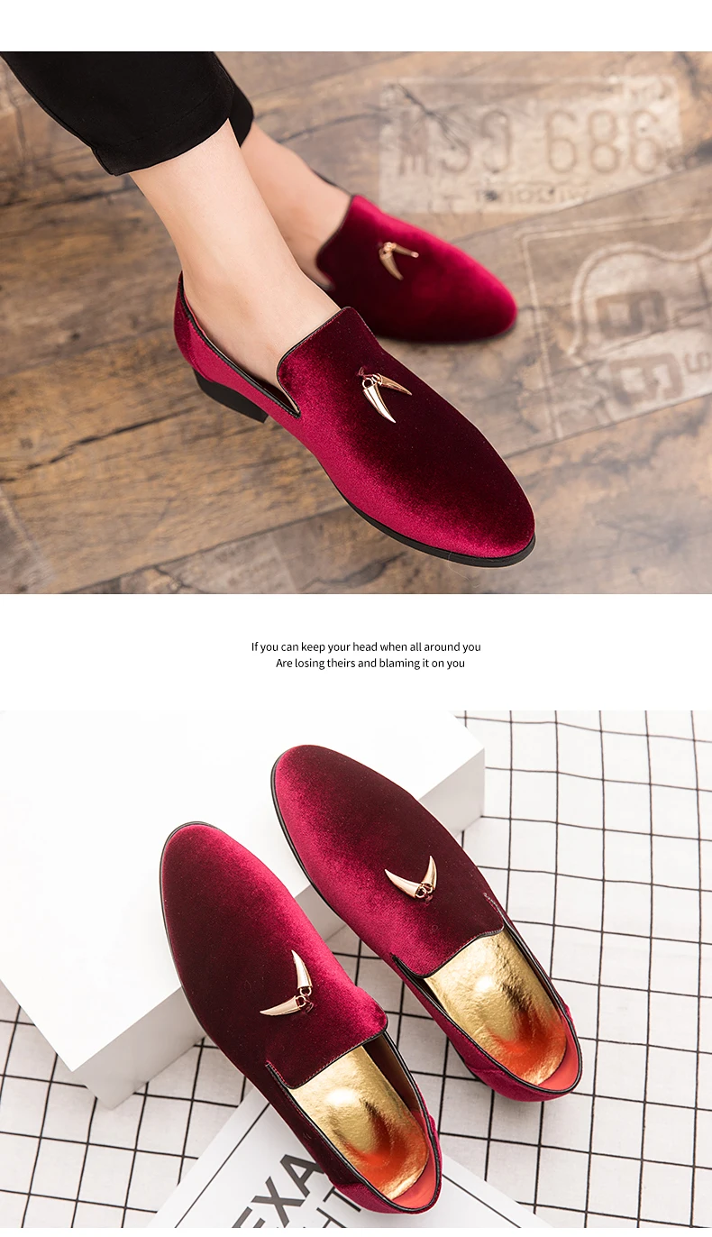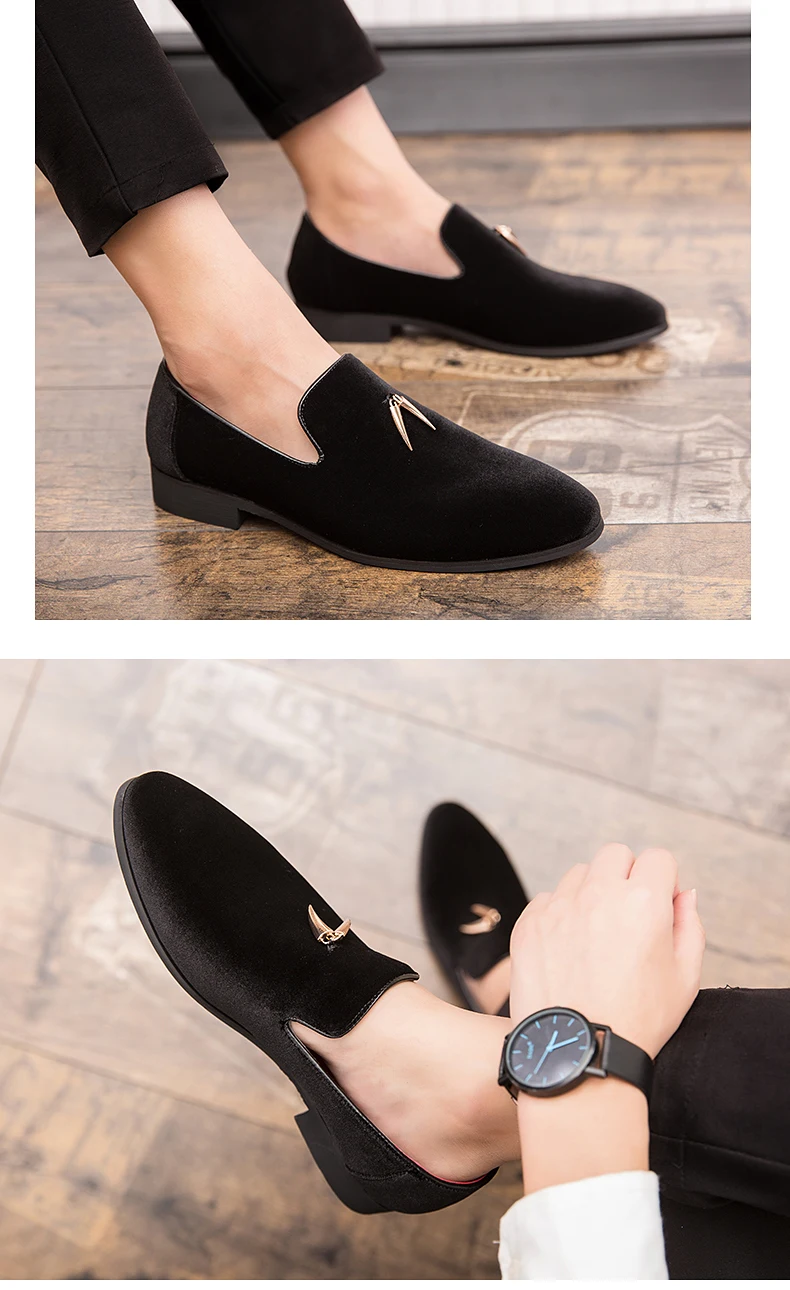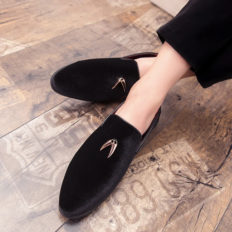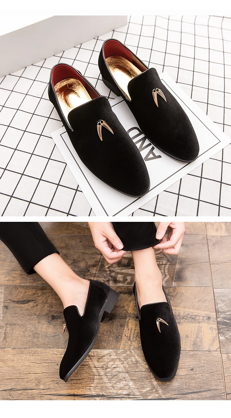 Fashion Party and Wedding Handmade Men Loafers Men Velvet Shoes Leaves and Gold Buckle Men Dress Shoe Men’s Flats Zapatos Hombre