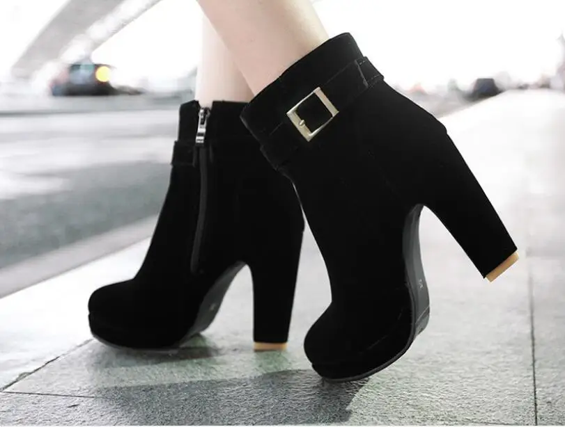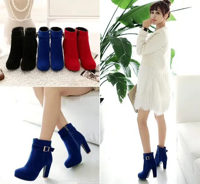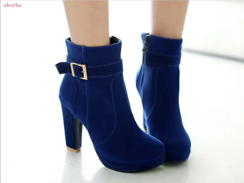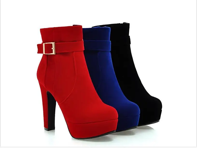 Fashion Red High Heels Women Ankle Boots Lace Up Fall Winter Platform Ladies Boots Large Size Fashion Shoes Black blue Large siz