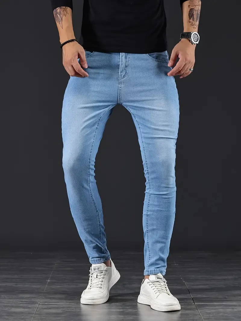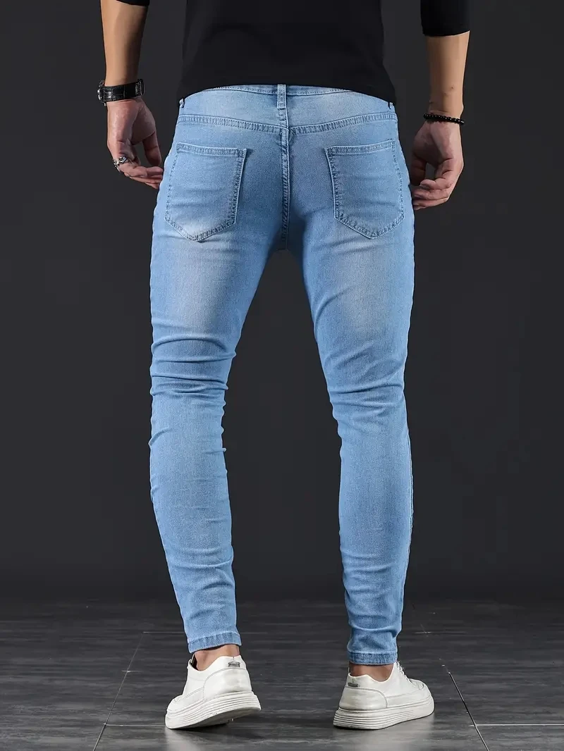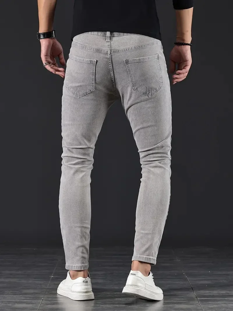 Fashion Street Style Grey Skinny Jeans Men Vintage wash Solid Denim Trouser Mens Casual Slim fit pencil denim Pants hot sale