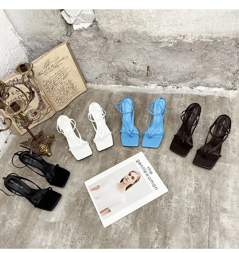 Square Head Ankle Strap Sandals Women Fashion High Heel Gladiator Narrow Band Party Dress Pump Shoes Zapatos De Mujer