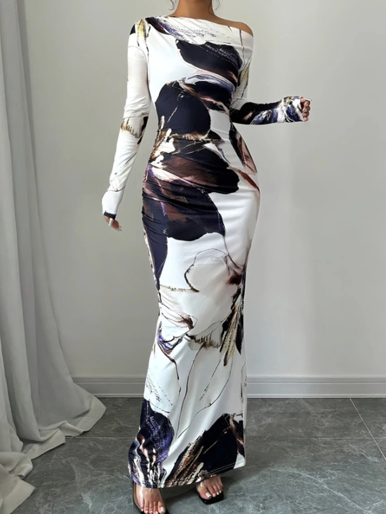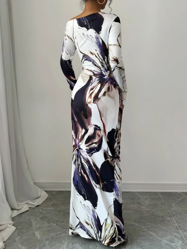 Sexy Long Sleeved Dress Summer Slim Fit Piece Long Dress Evening Club Evening Dresses Women’s Clothing