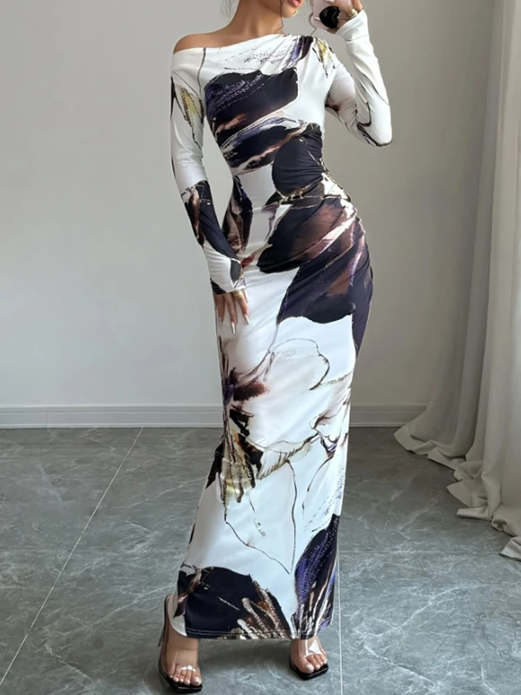 Sexy Long Sleeved Dress Summer Slim Fit Piece Long Dress Evening Club Evening Dresses Women’s Clothing