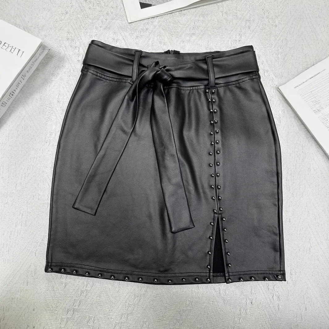 • Fashionable Design : Featuring a unique metal nail slit design and PU leather belt, this skirt adds a trendy touch to any outfit.