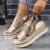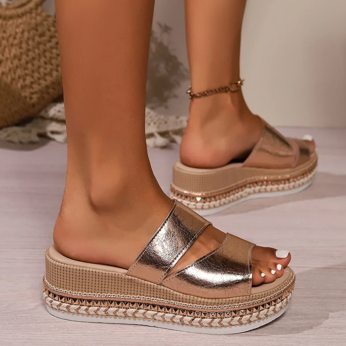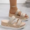 Fretwork Heels House Slippers Platform Gold Sandals Shoes Woman 2024 Luxury Slides Low Rivet Designer Soft Fabric Rome PU Rubber