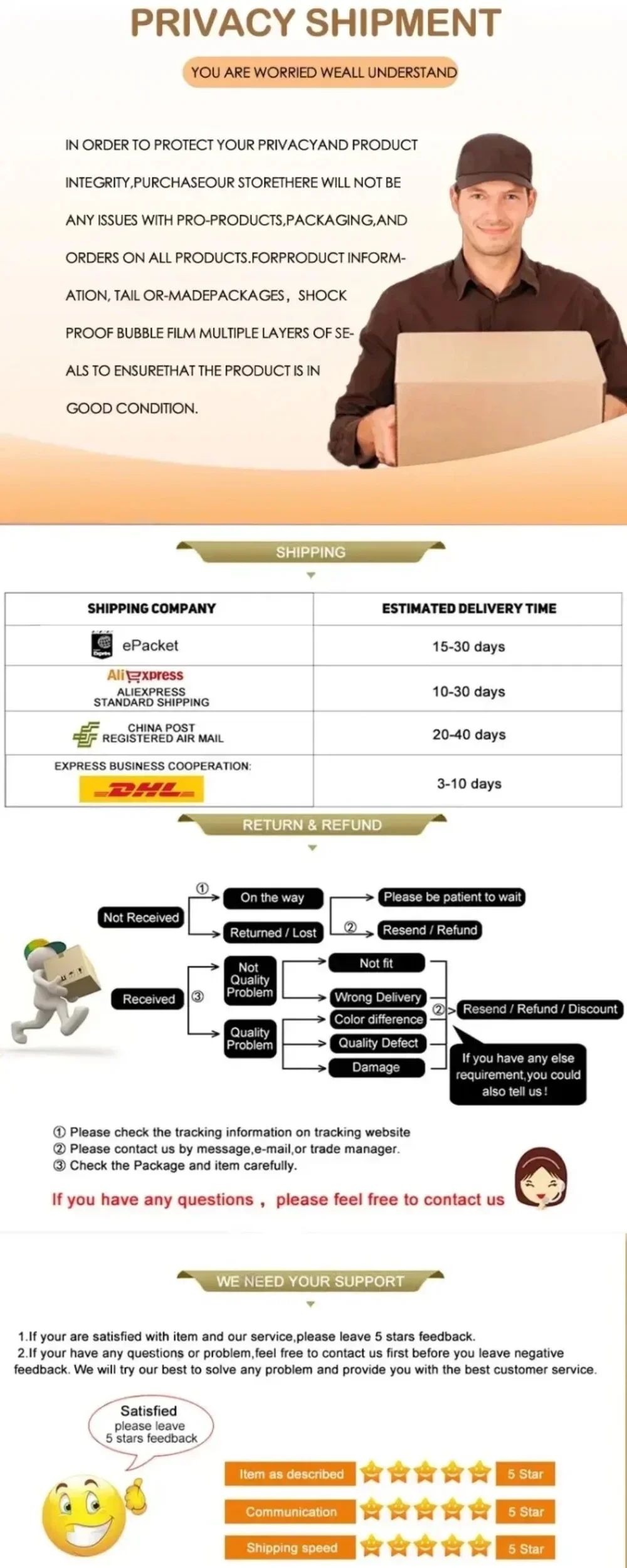 *You can submit refund requests within 15 days after the guaranteed period for delivery (45 days) has expired. You can do it by sending a message on Contact Us page