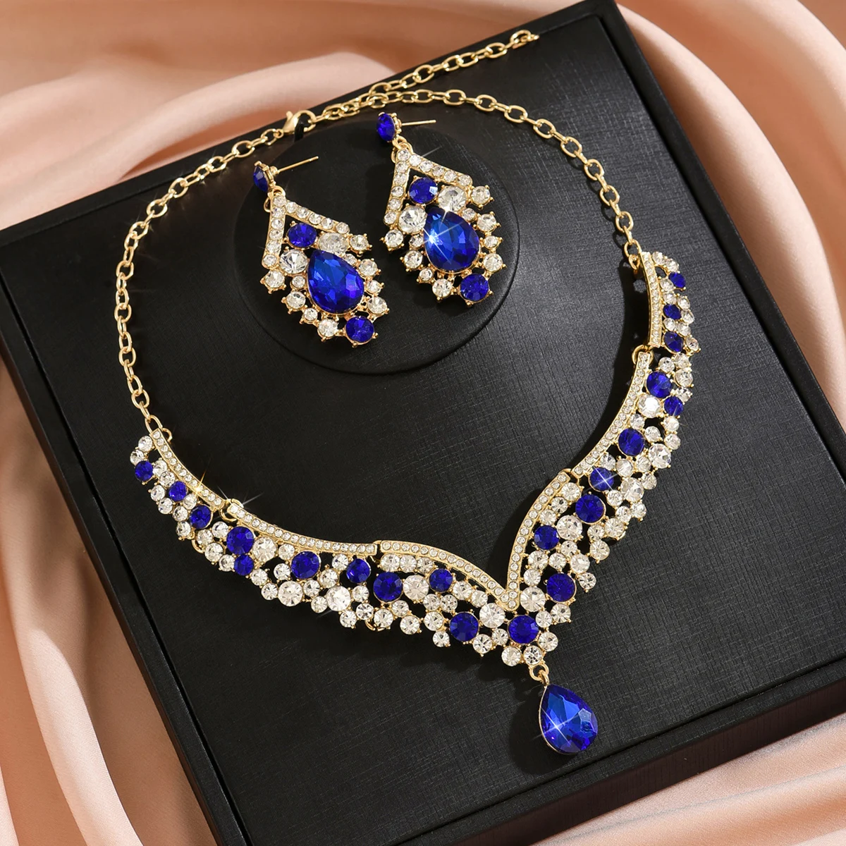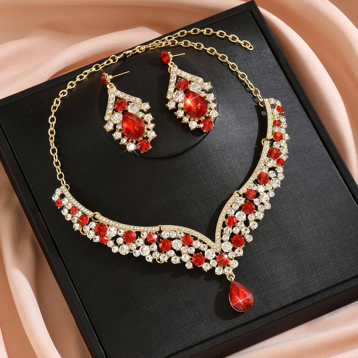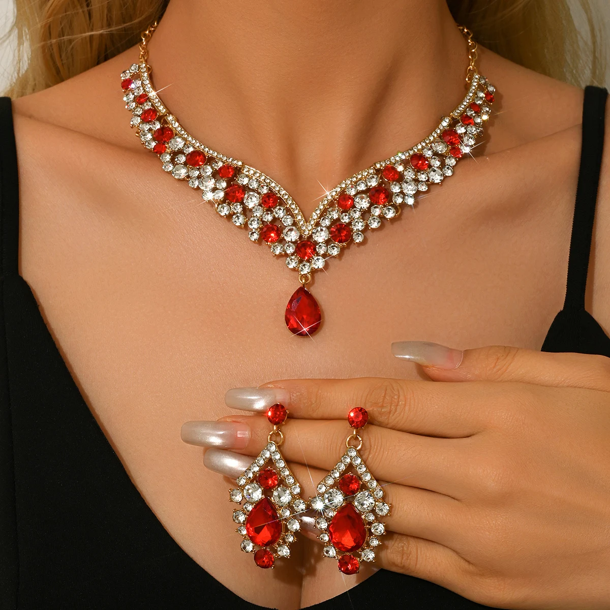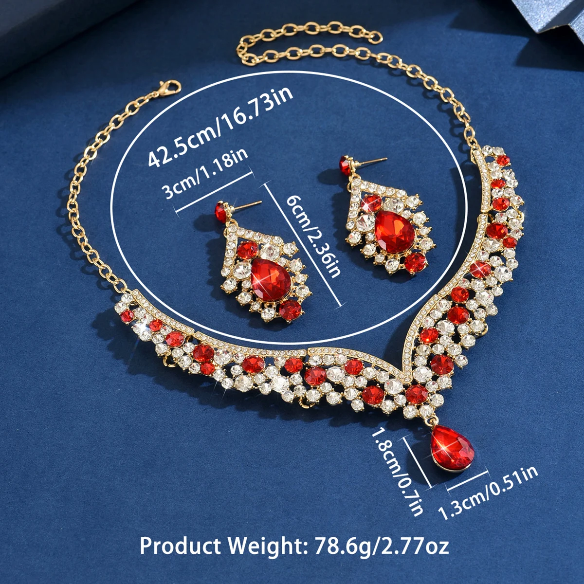FYUAN Women’s Jewelry Set Red Blue Water Drop Crystal Earrings Necklace Zinc Alloy Casual Style All Season Wear