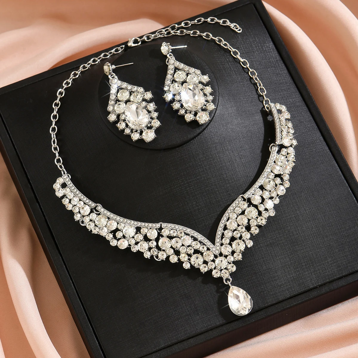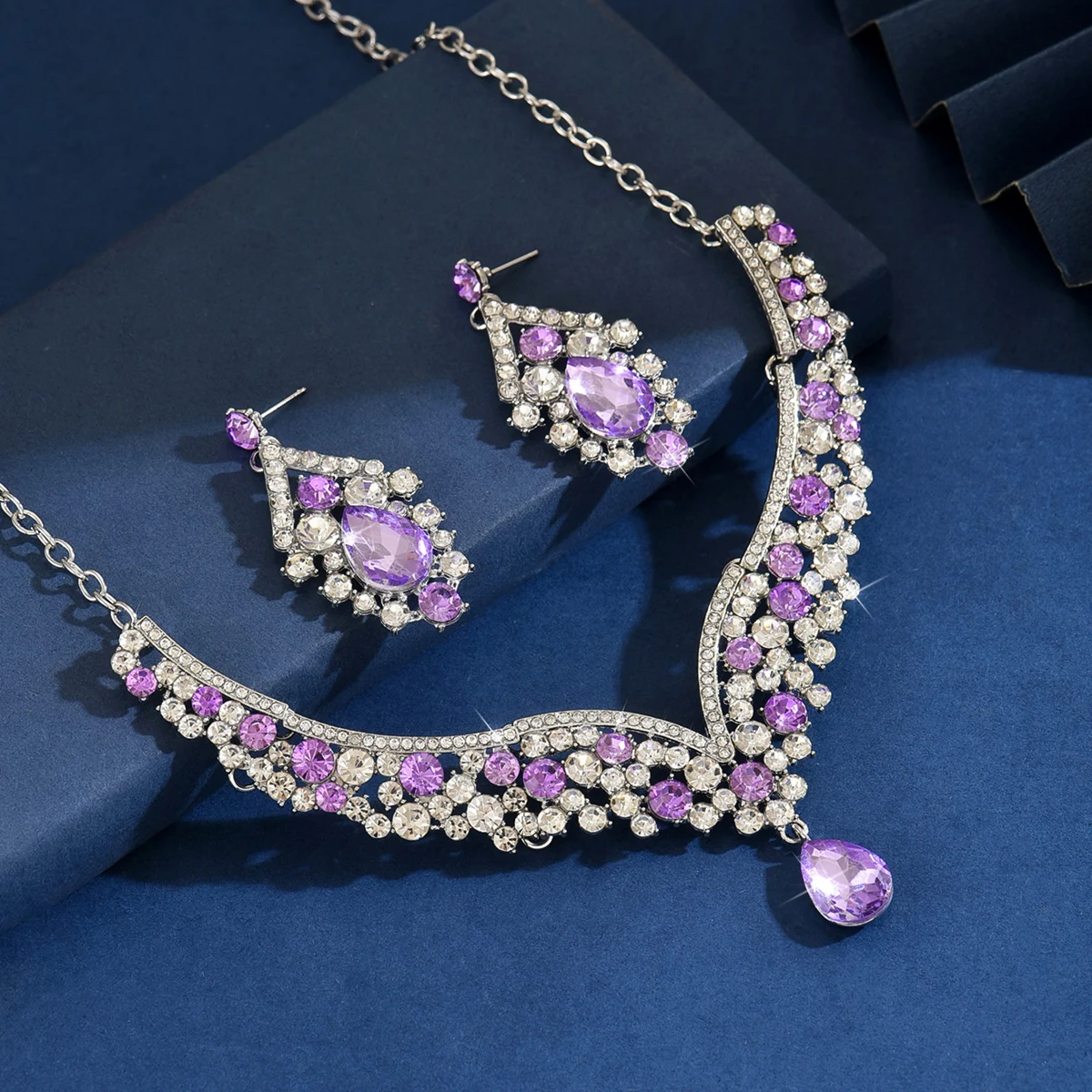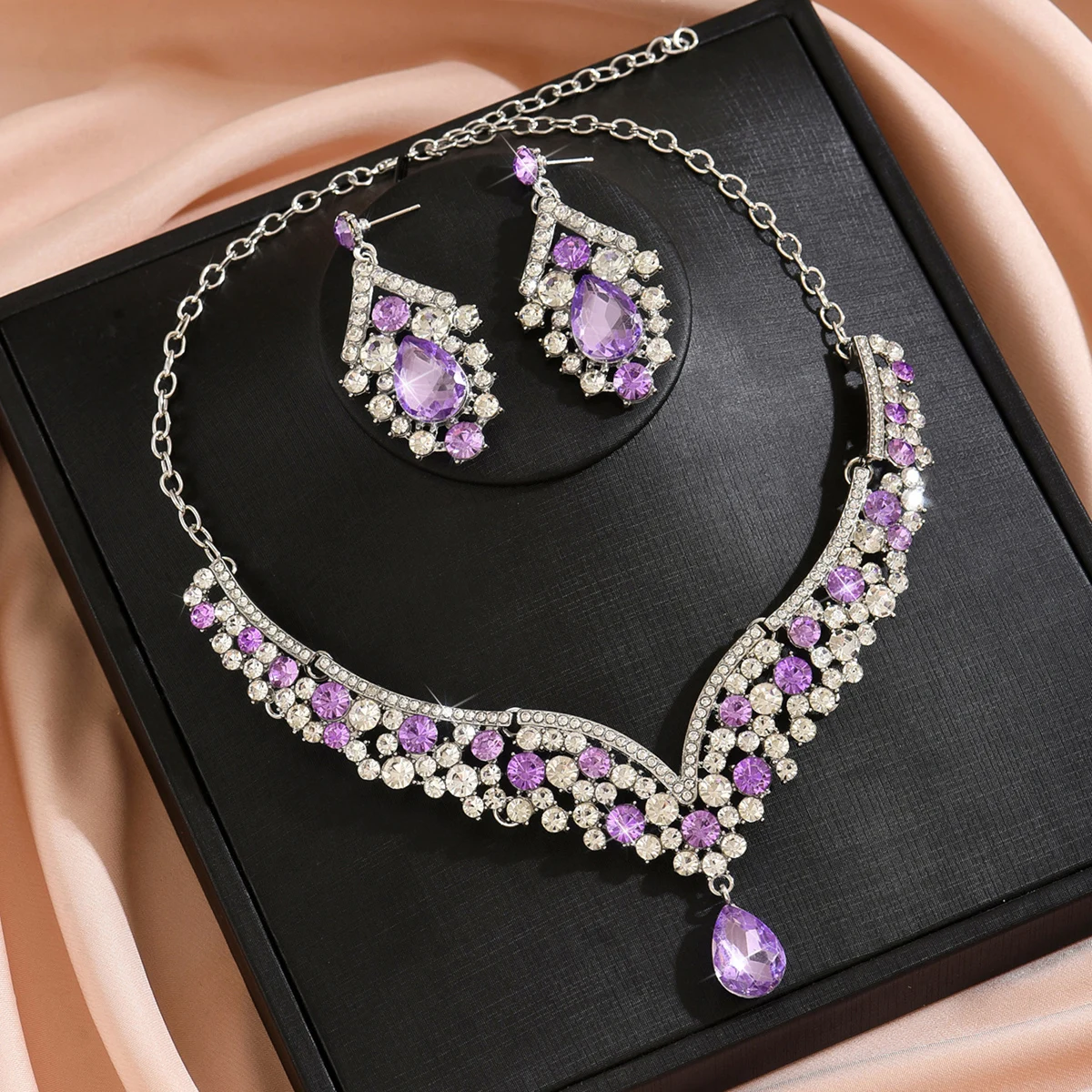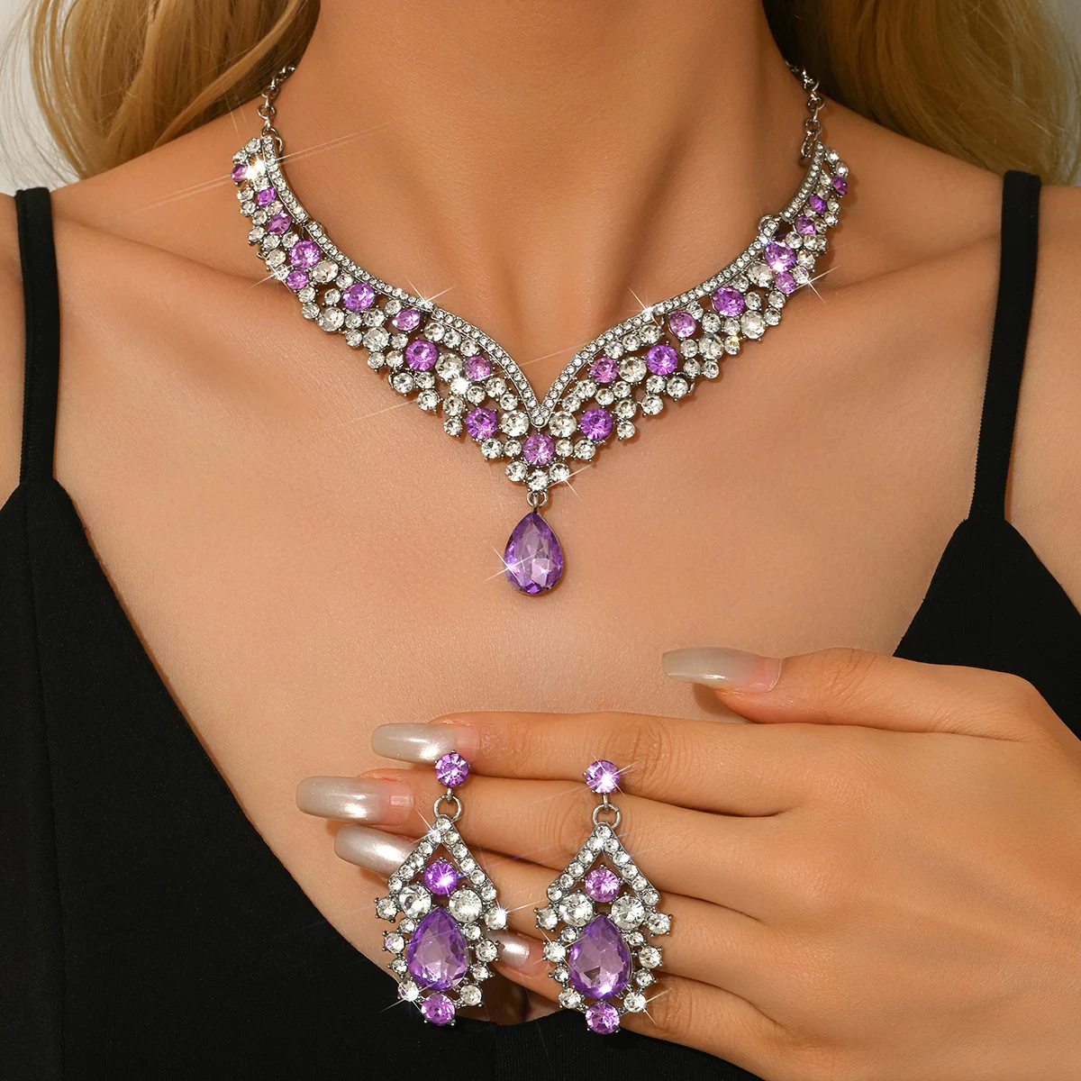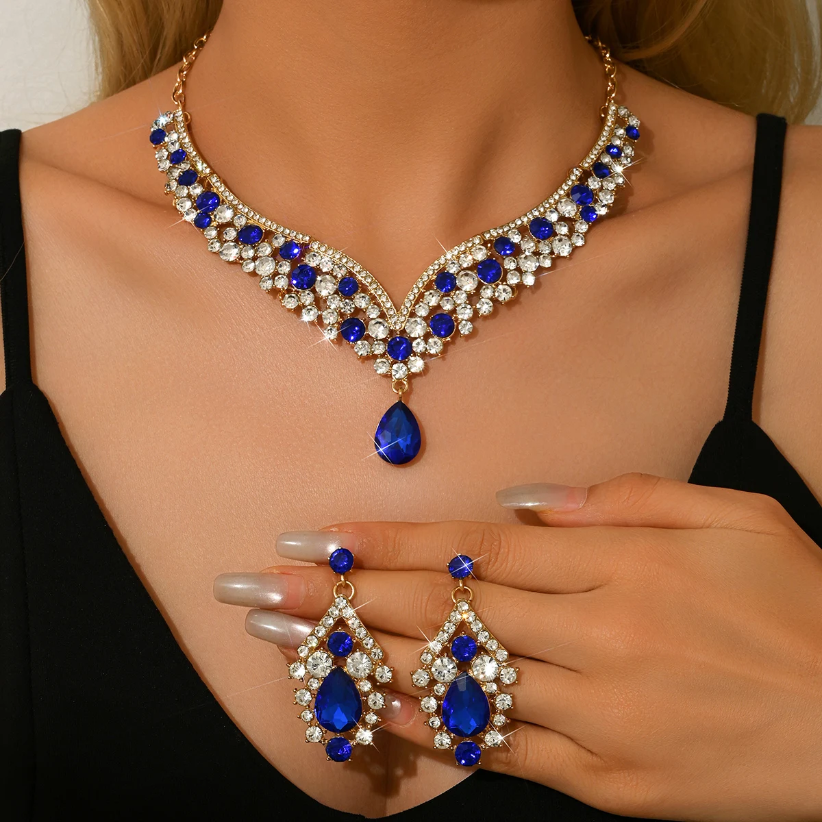 FYUAN Women’s Jewelry Set Red Blue Water Drop Crystal Earrings Necklace Zinc Alloy Casual Style All Season Wear