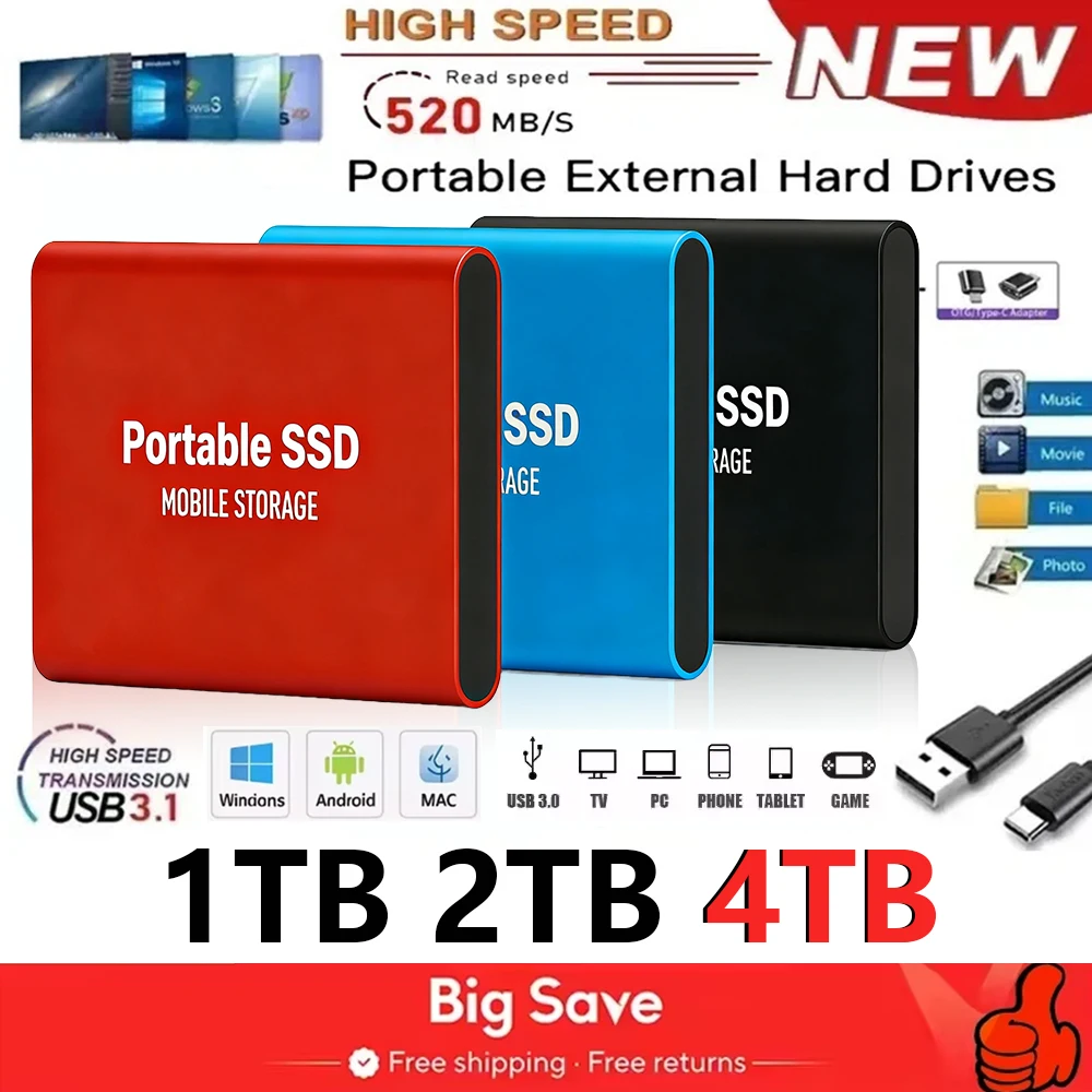 Genuine Portable SSD 1TB High Speed External Hard Drive 2TB/4TB USB 3.2 Hard Disk 16TB Mass Solid State Drive for Laptop/PC/MAC