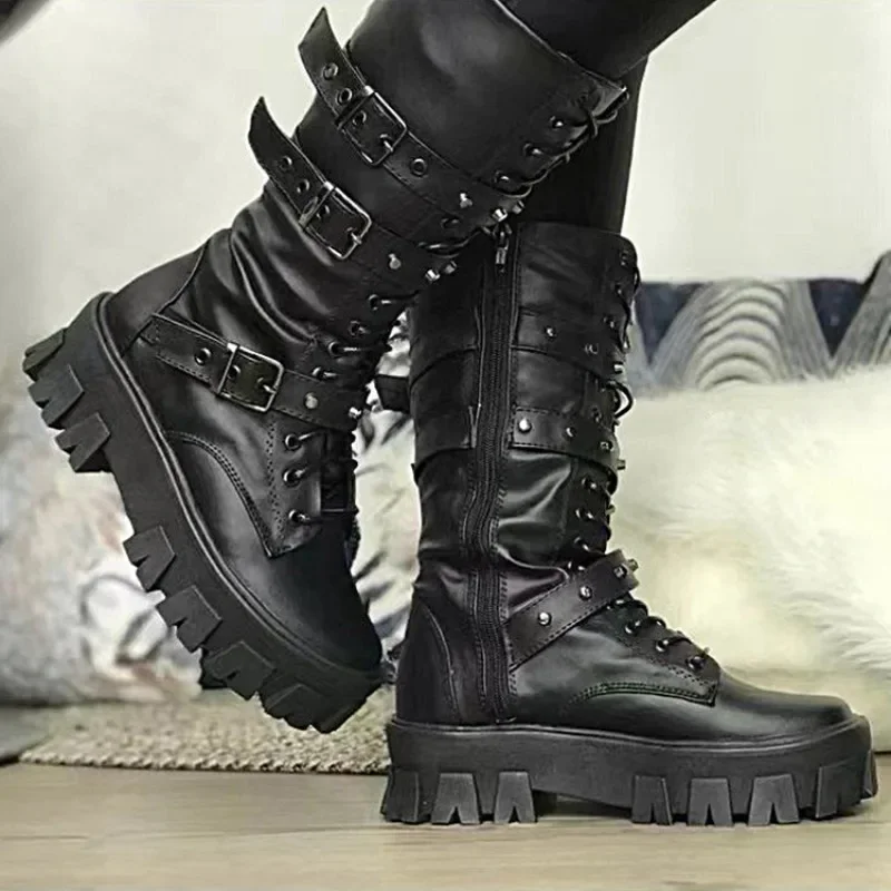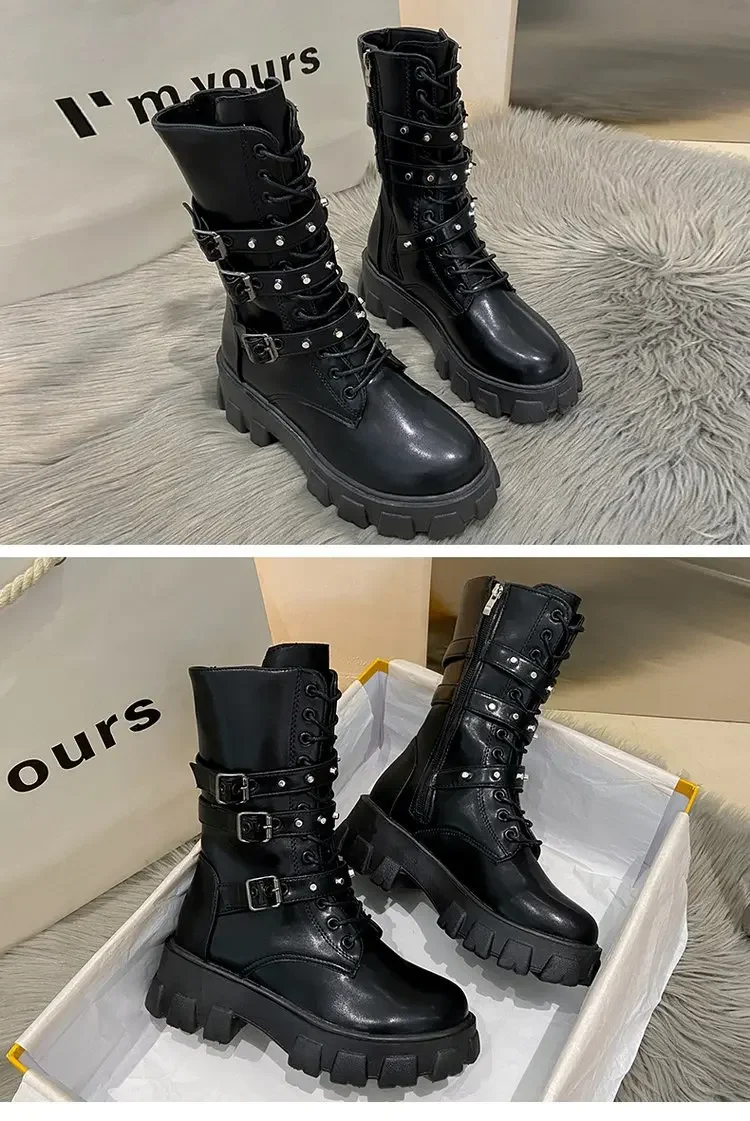 Gothic Women’s Boots Fashion Punk Motorcycle Boots 2025 Autumn Winter Women Non-slip Boots Platform Heel Ladies Shoe Botas Mujer