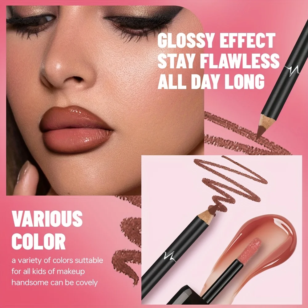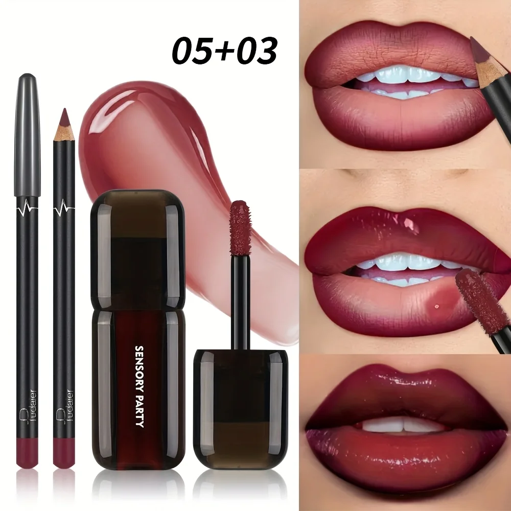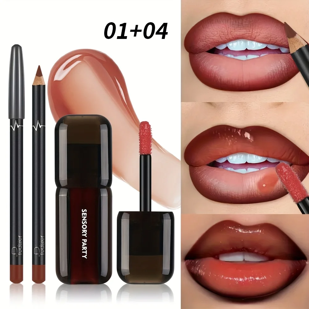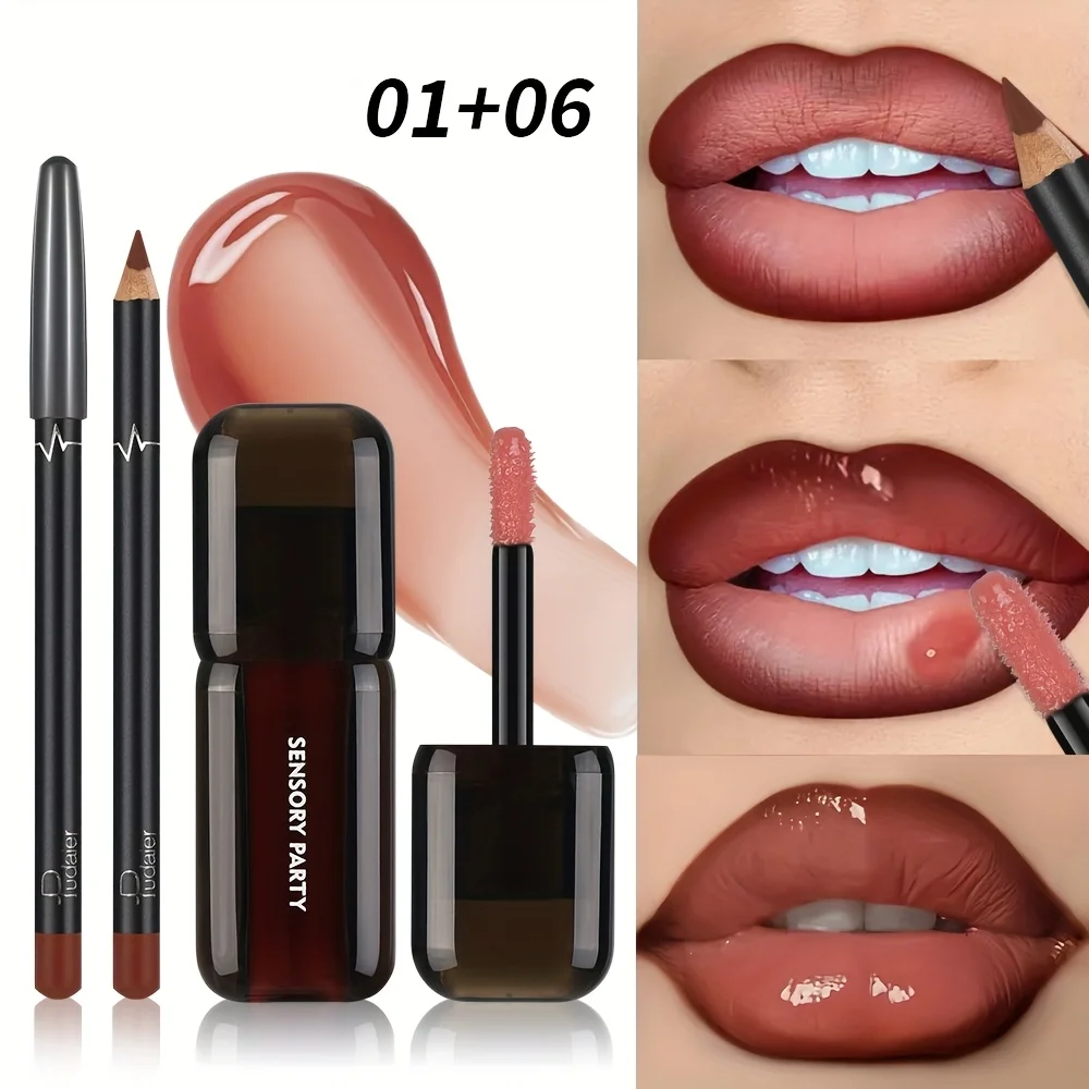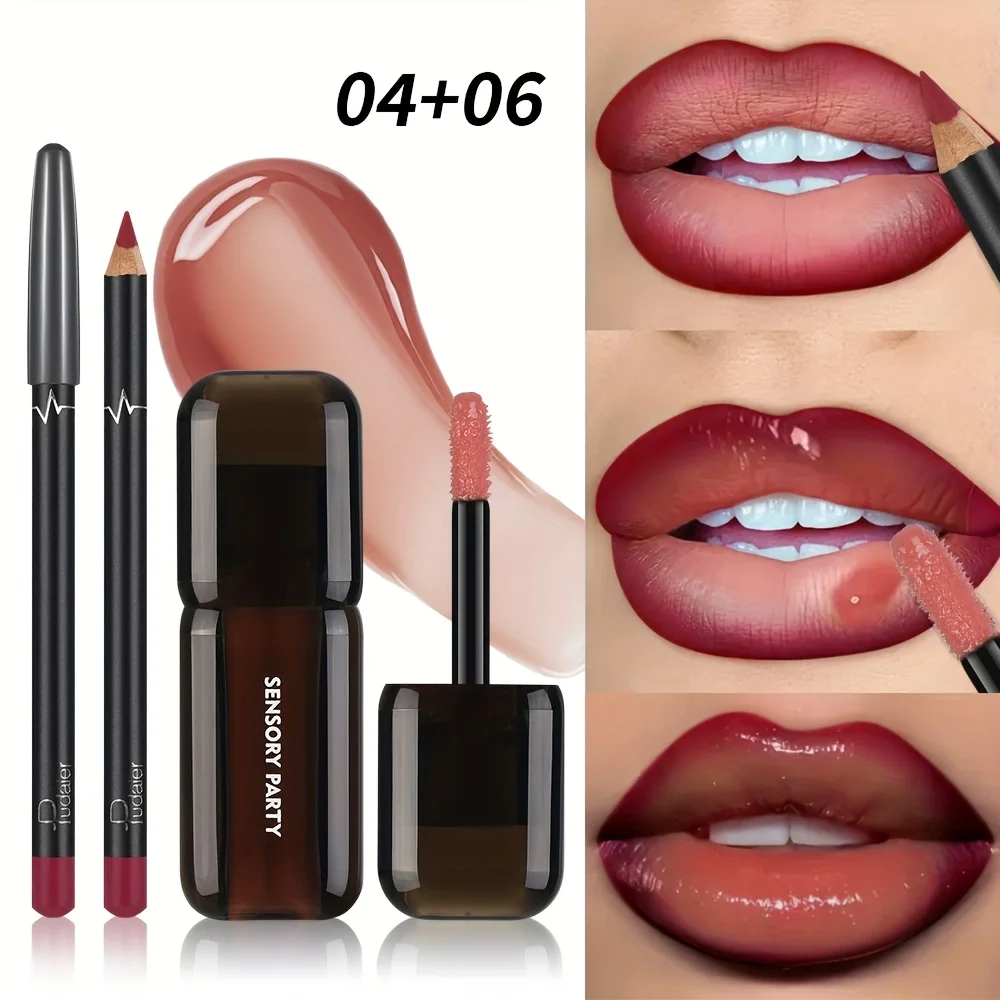 Gradient Lips Set, Lip Liner + Glass Lip Gloss, Mirror Shine Finish, Smooth Blend, Nude Shades, Long-Lasting