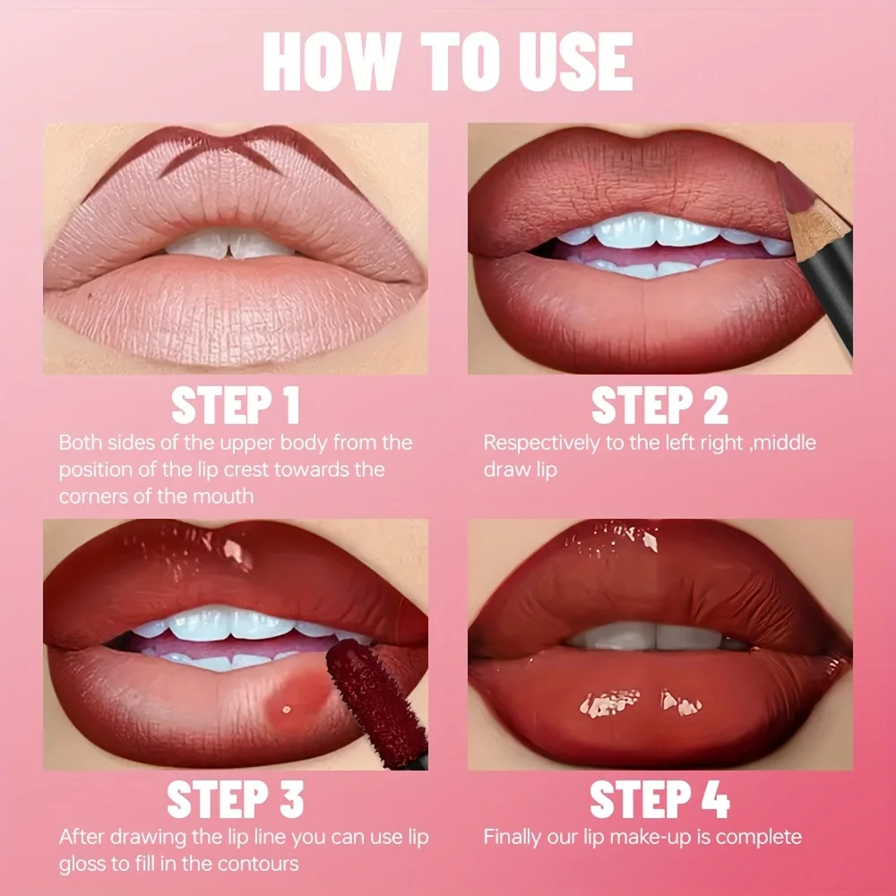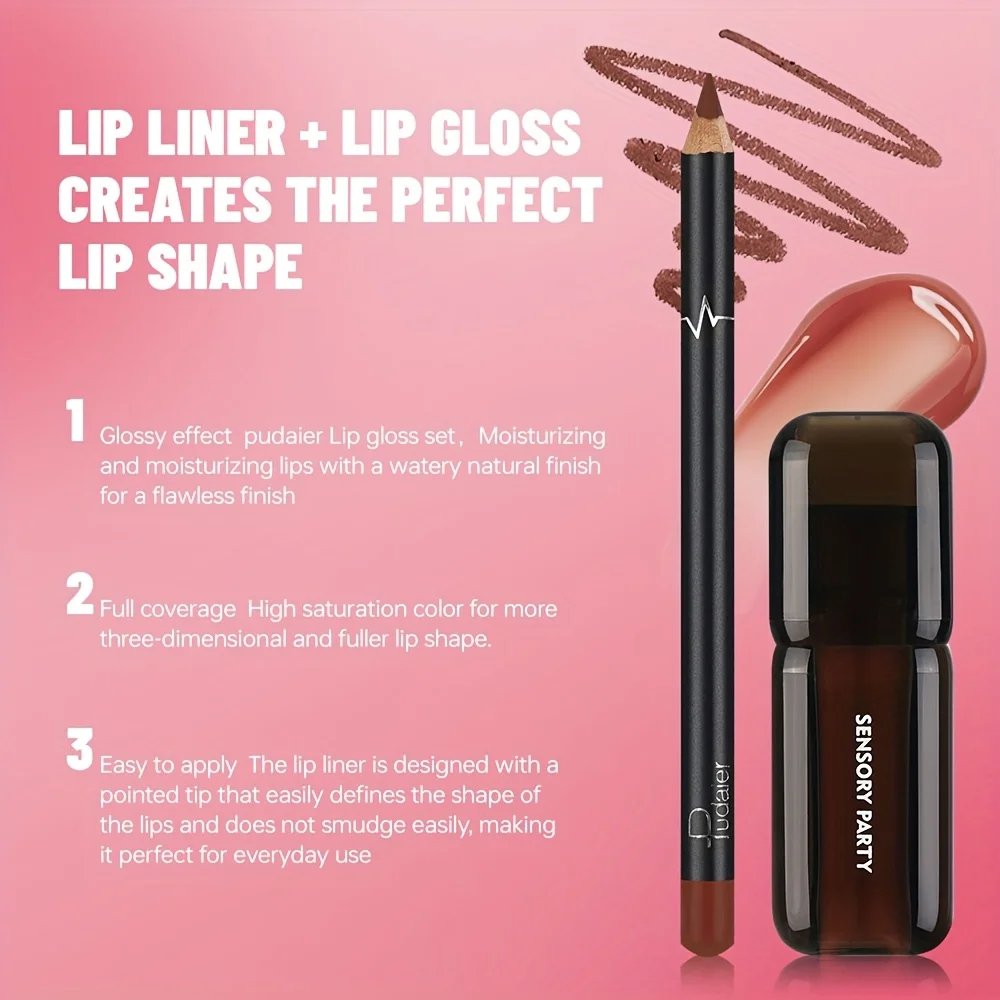 Gradient Lips Set, Lip Liner + Glass Lip Gloss, Mirror Shine Finish, Smooth Blend, Nude Shades, Long-Lasting