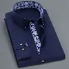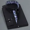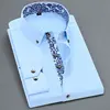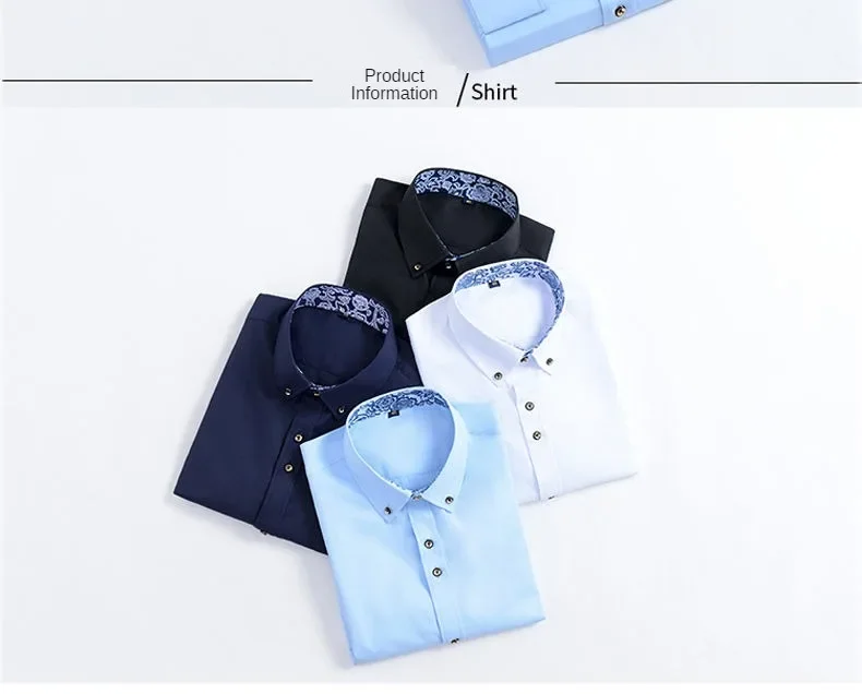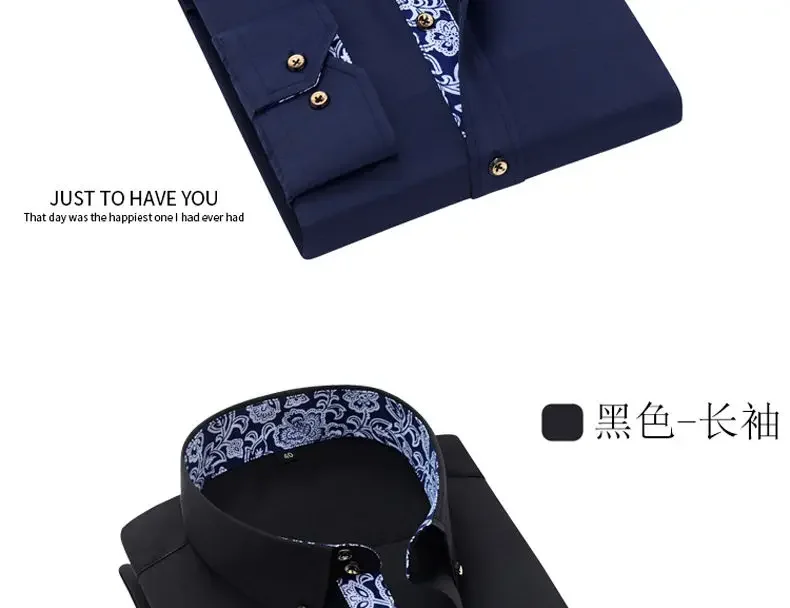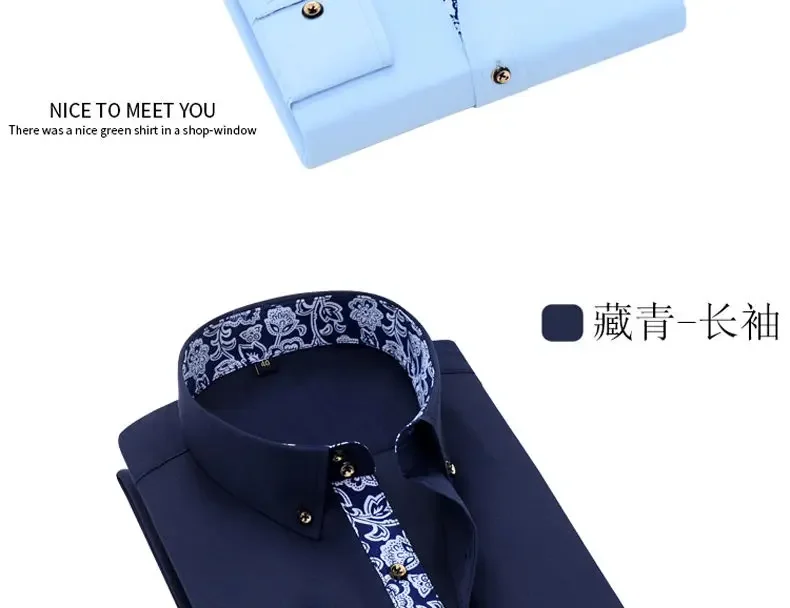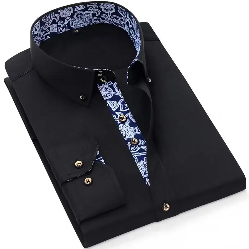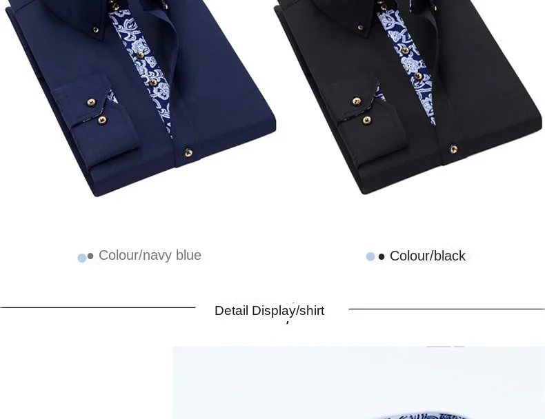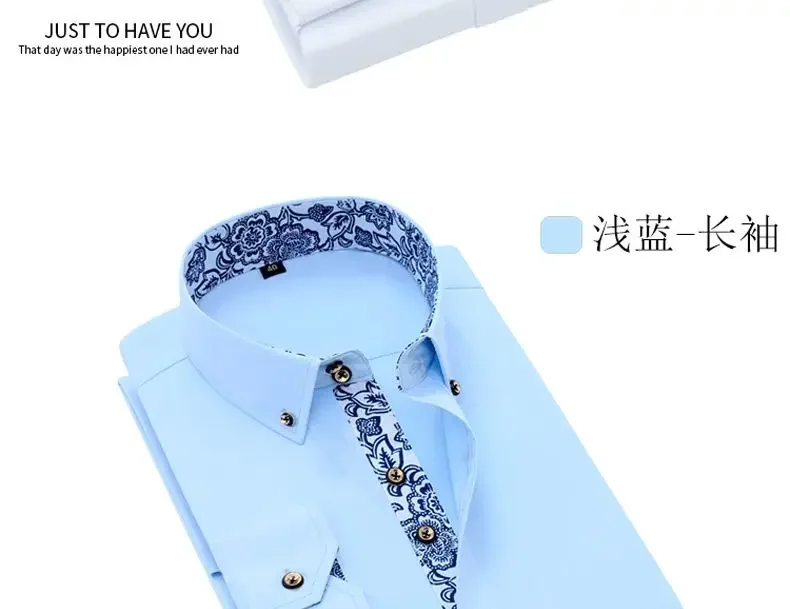High-end Cotton Men’s Long-sleeved Shirts – Retro Blue and White Porcelain Collar Style Business Casual Shirt White Black Blue