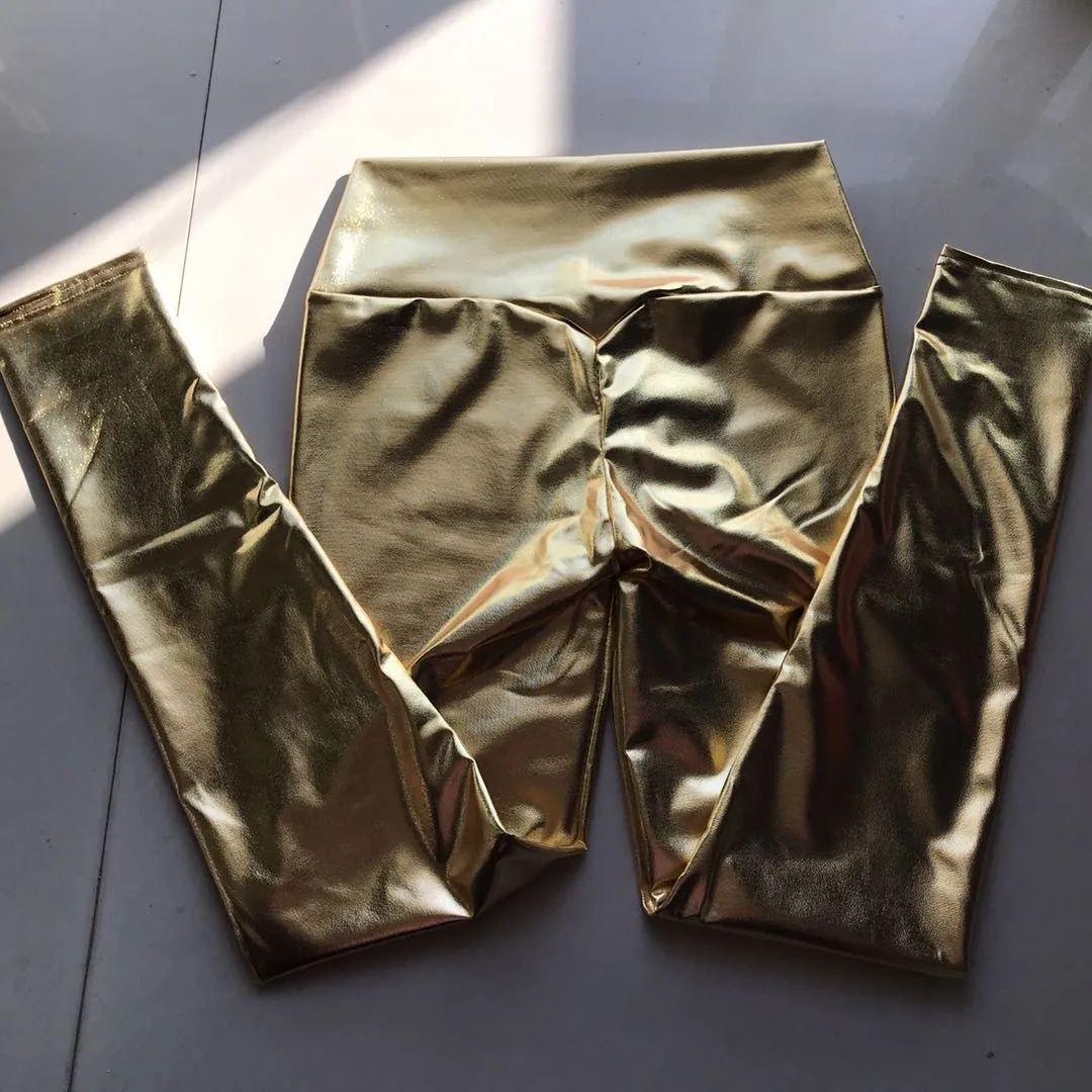 High-Waist Elastic Gold And Silver Skin-Tightening Butt-Lifting Slimming Pants Women’s Fashionable Nine-Piece Pencil Pants