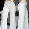High Waist Solid Color Wide Leg Pants Summer Chic Loose Elegant Metal Flared Pant Office Ladies Straight Holiday Women Trousers