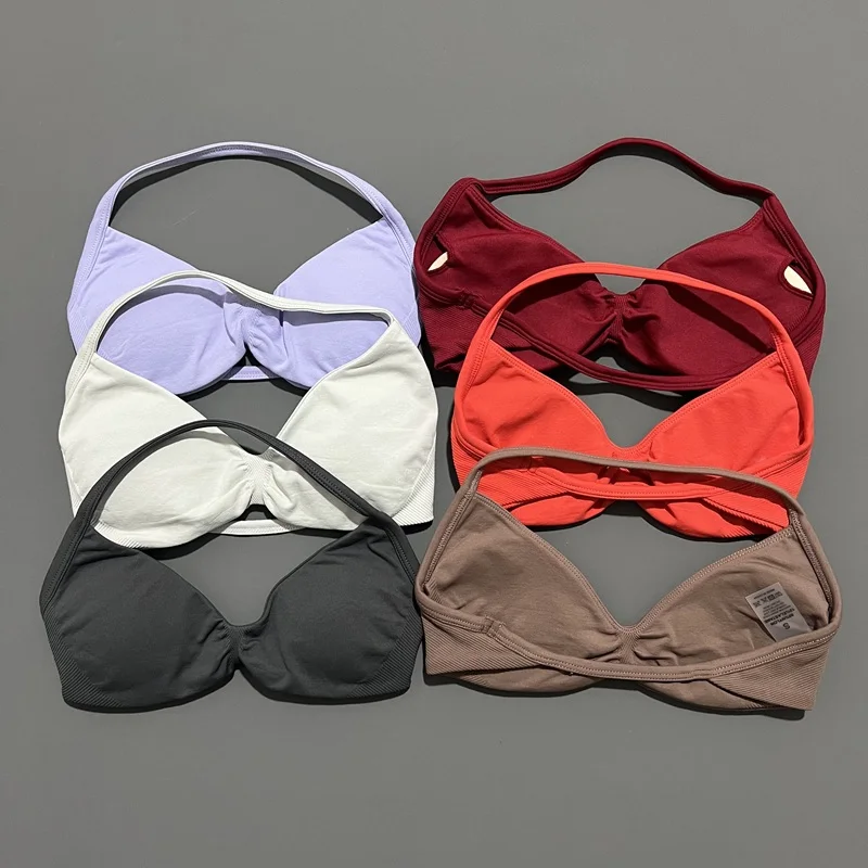 HISTELLO Impact Strappy Bra Gym Top High Support With Pads bra Women Seamless Halter Sports Bras Scrunch Workout Yoga Underwear