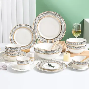 European Ceramic Steak Plates Household Tableware Golden Bead Ceramic Plates Western Food Plate Banquet Dessert Plates Kitchen