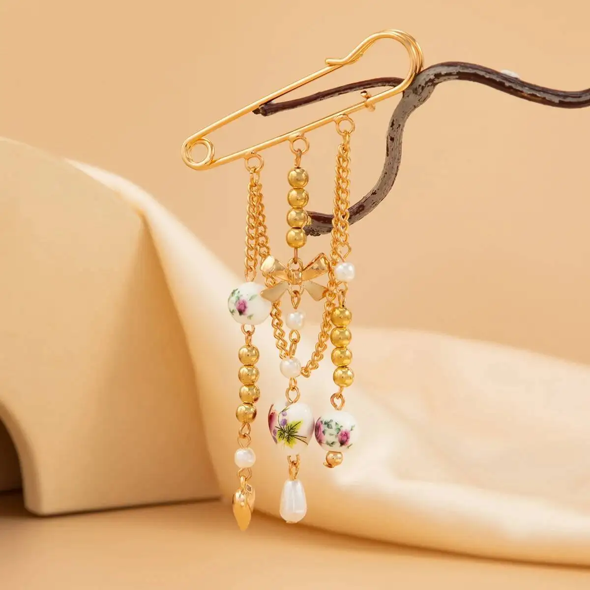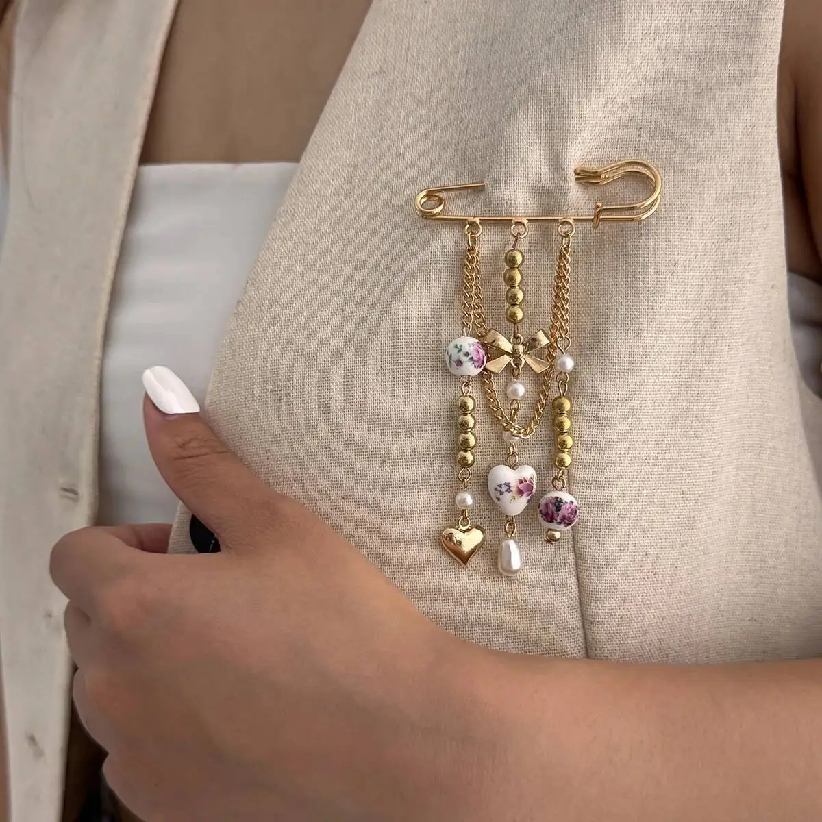 Ingemark Fashion CCB Heart Ceramic Beads Tassel Brooch for Women Classic Retro Bow Dress Suit Collar Pins Party Banquet Jewelry