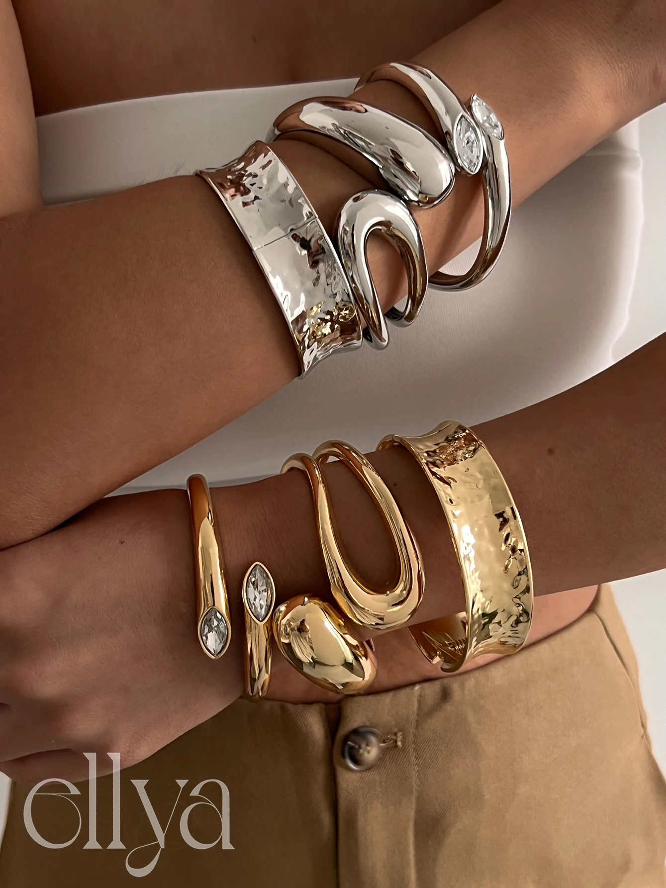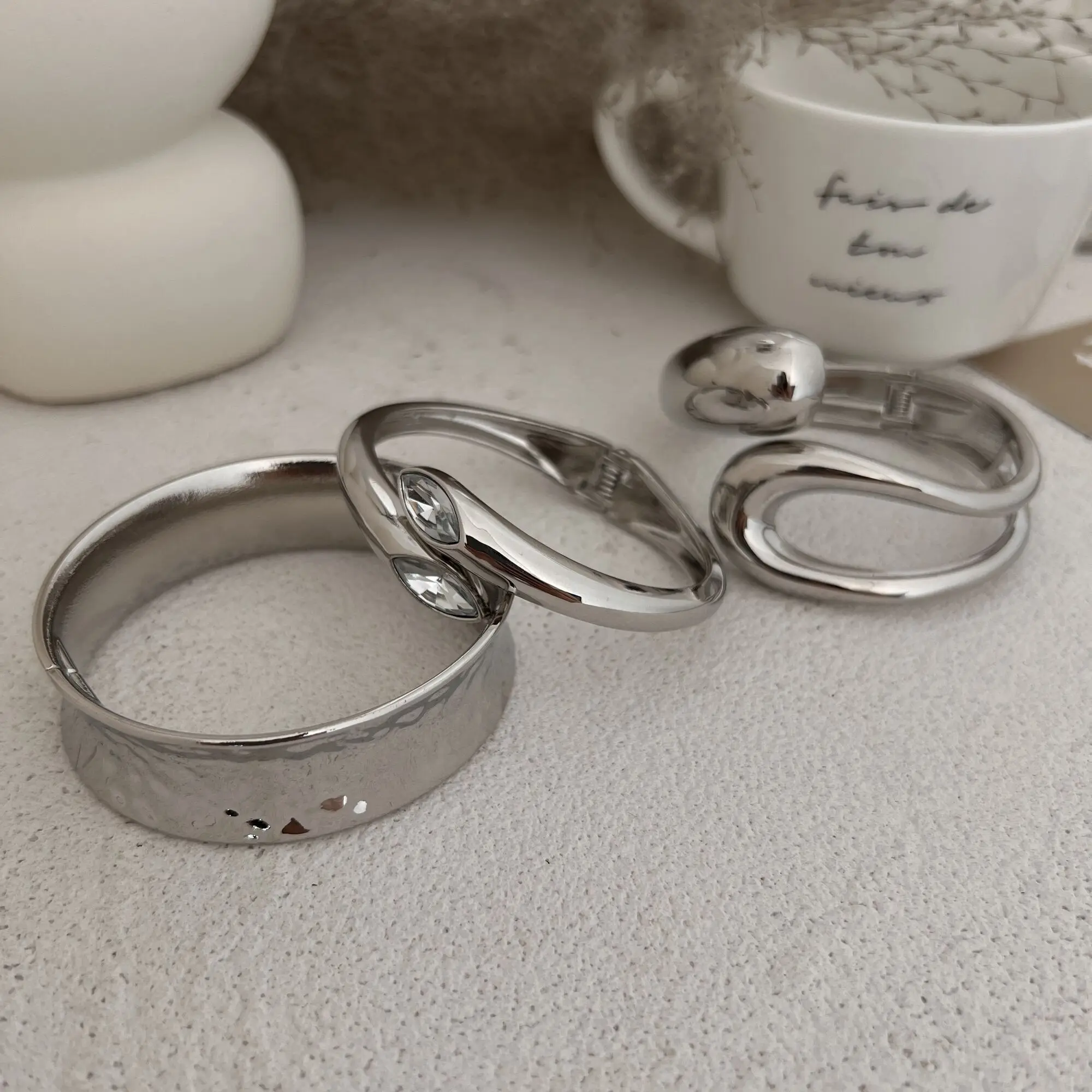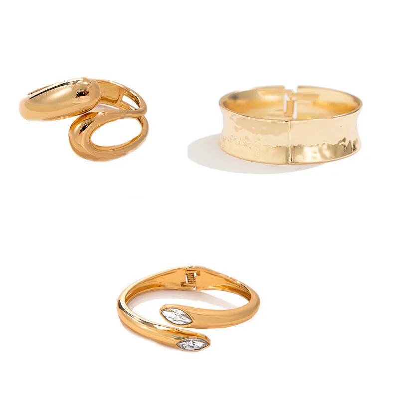 IngeSight.Z New Trendy Smooth Metal Water Drop Spring Bangles for Women Punk Irregular Texture Concave Bracelet Party Jewelry