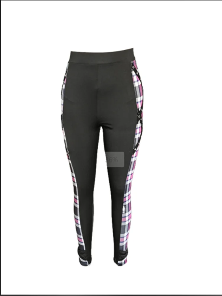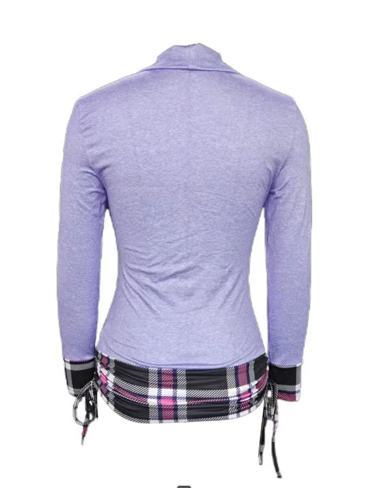 Japanese Harajuku Y2K 2000S Clothes Purple Patchwork Grid Pleated T-Shirt Slim Pants Suit Shoujo Girl Aesthetic 2 Pieces Set