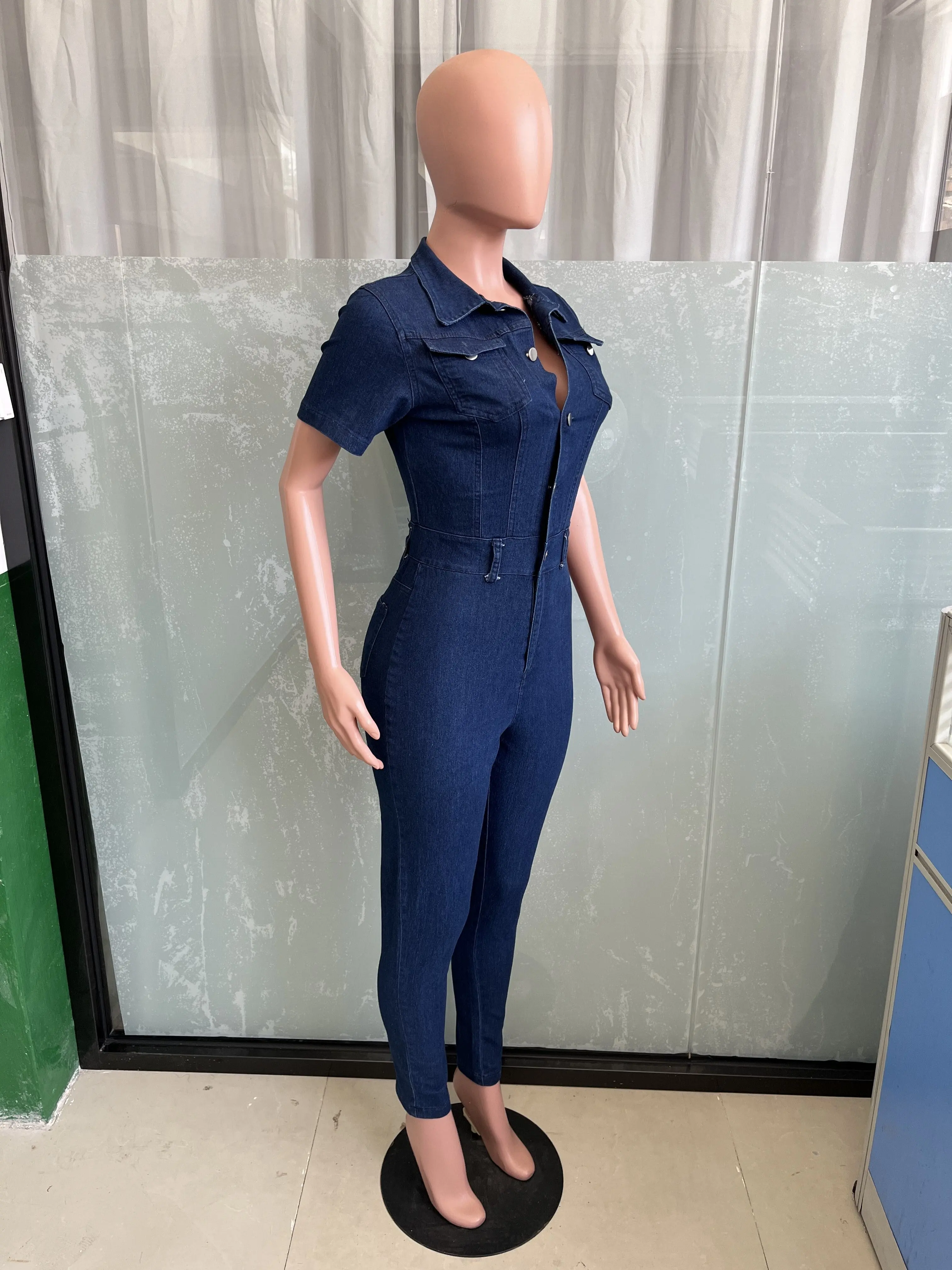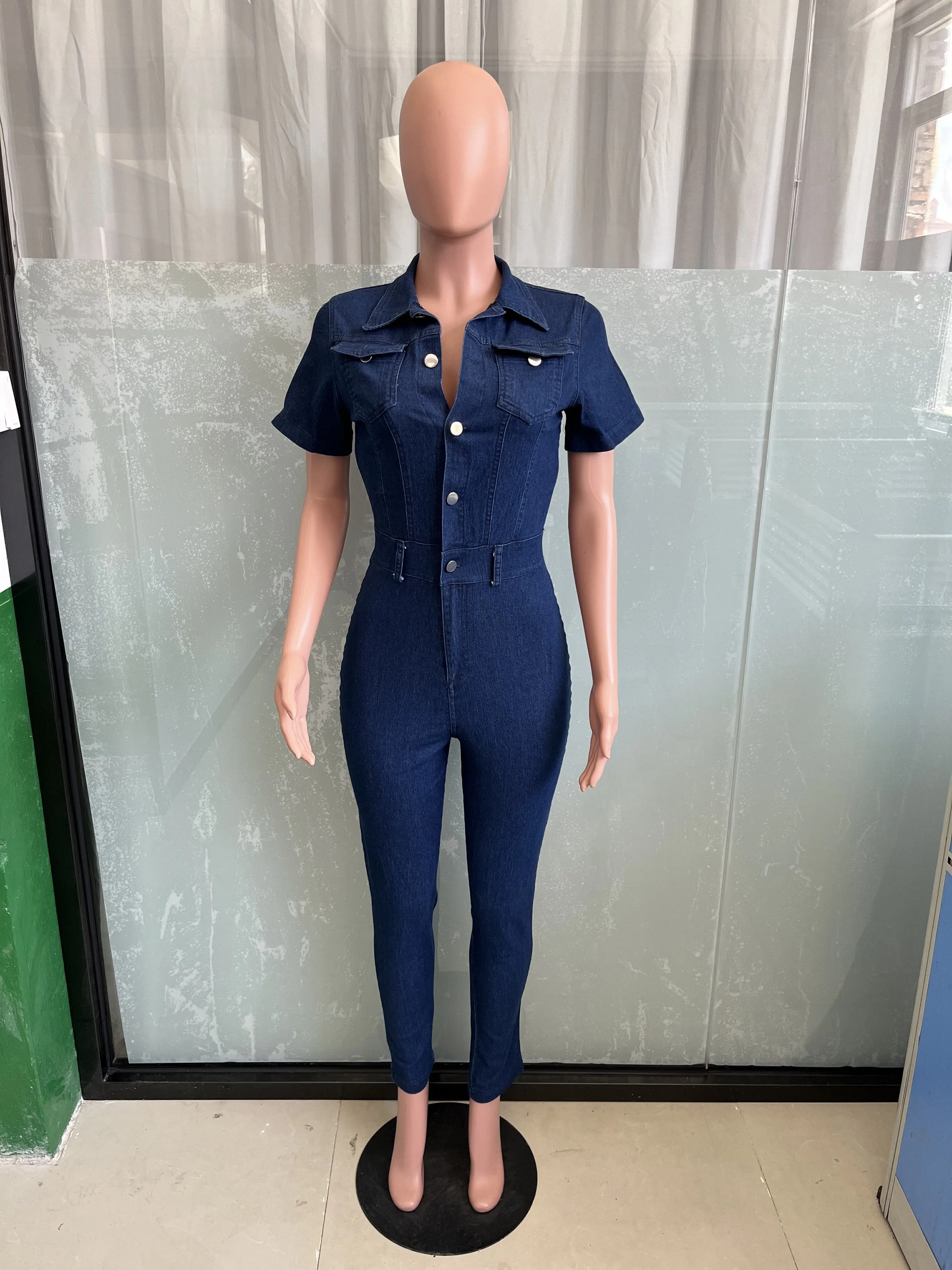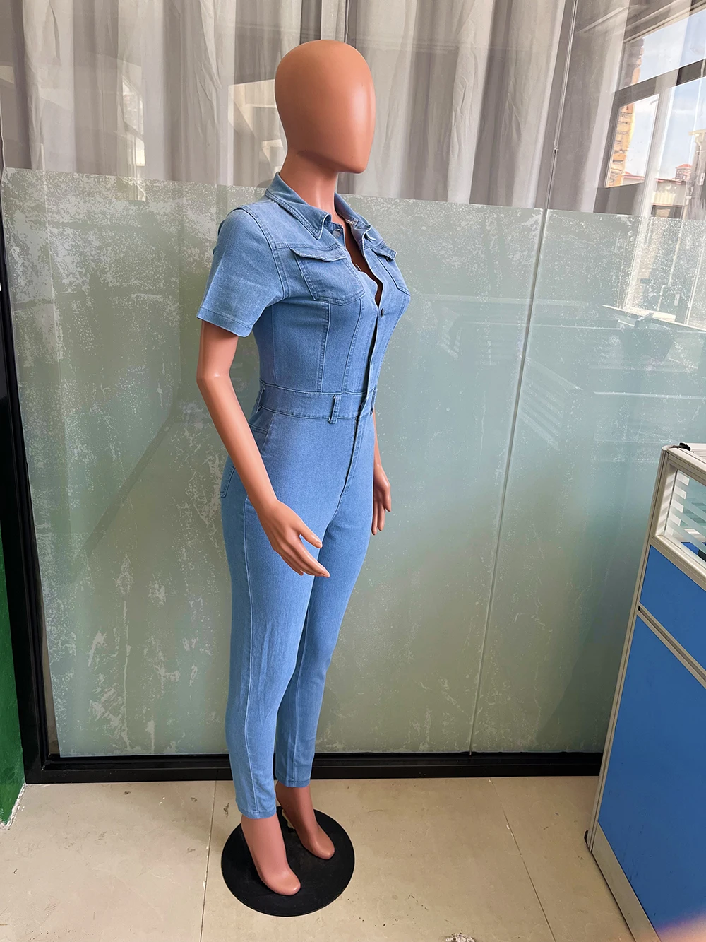 Jeans Stretch Jumpsuit Sexy Women Turn Down Collar Elegant Denim Casual Party Overalls Romper
