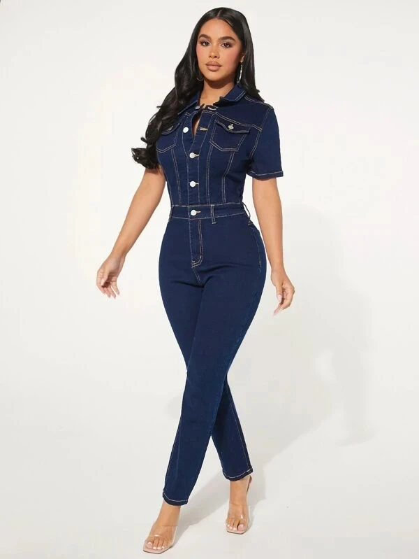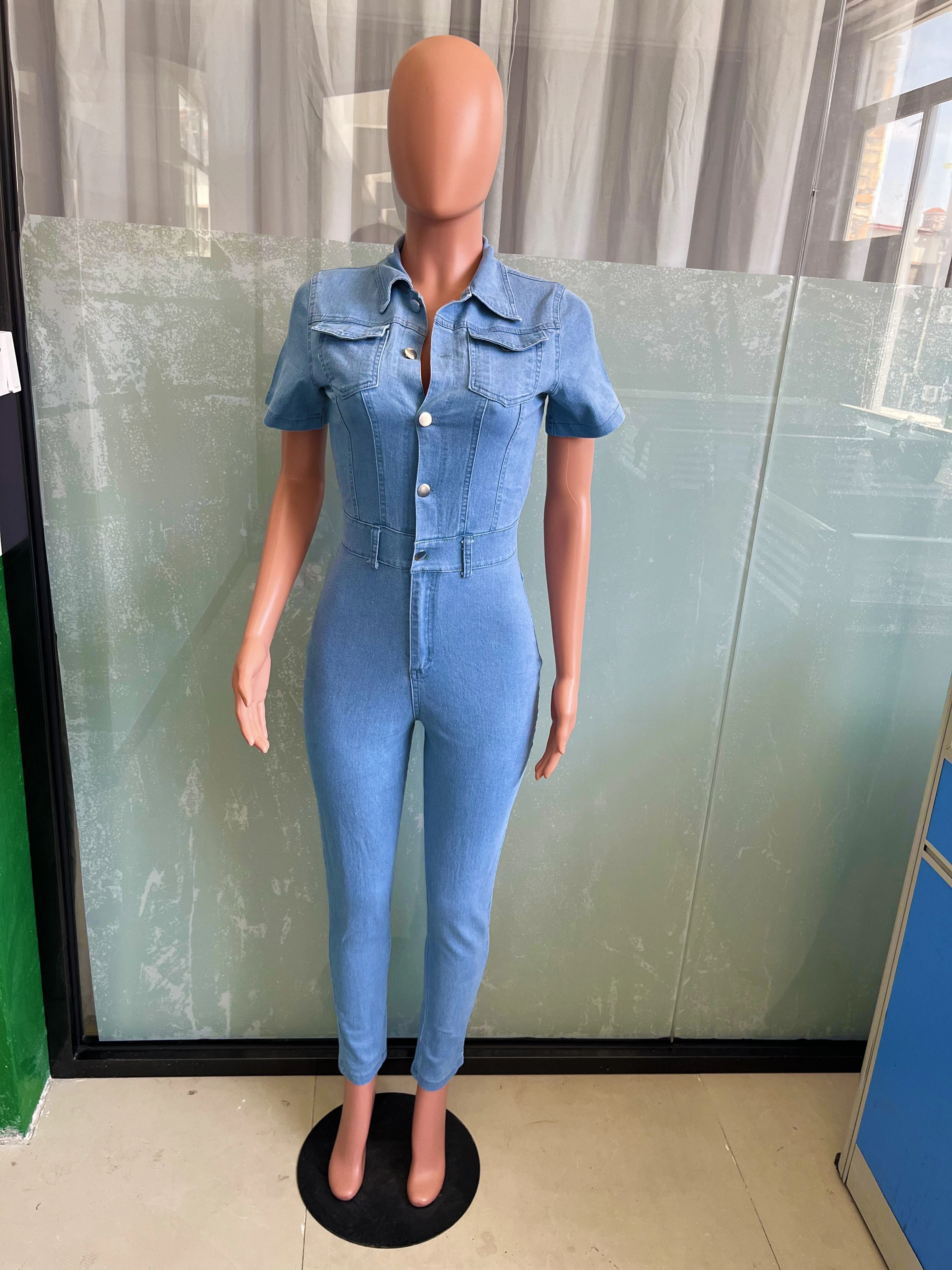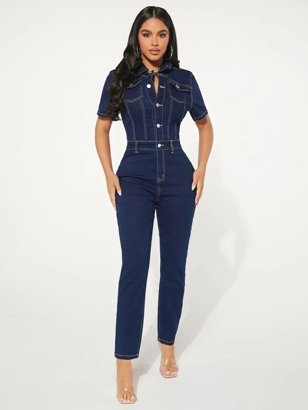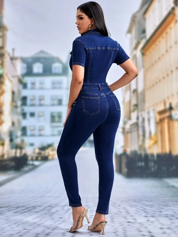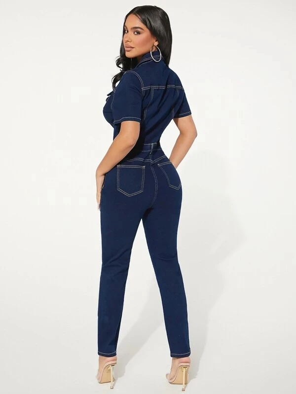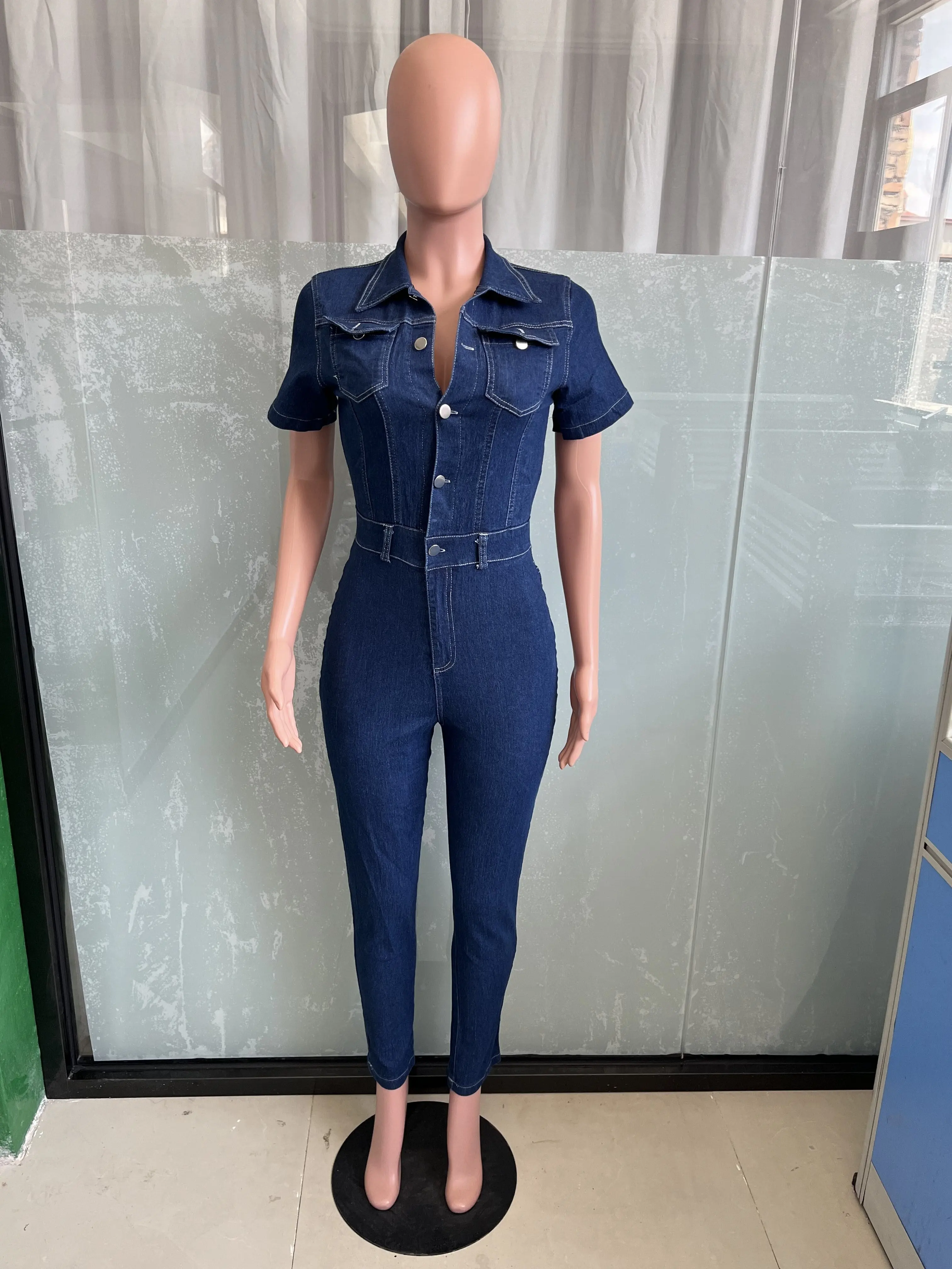 Jeans Stretch Jumpsuit Sexy Women Turn Down Collar Elegant Denim Casual Party Overalls Romper