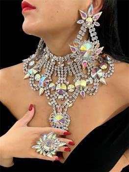 Crystal Bridal Jewelry Sets Wedding Party Costume Accessory Indian Necklace Earrings Set for Bride GorgeousJewellery Sets Women