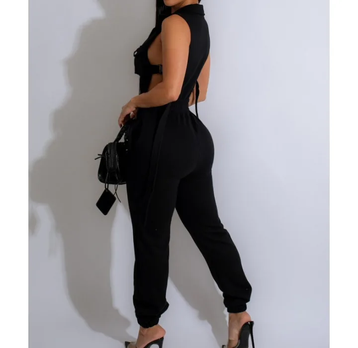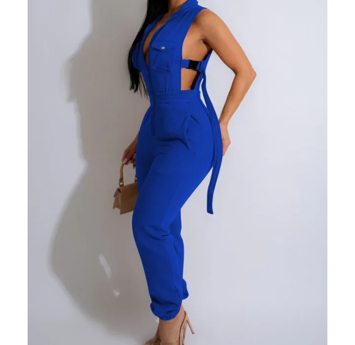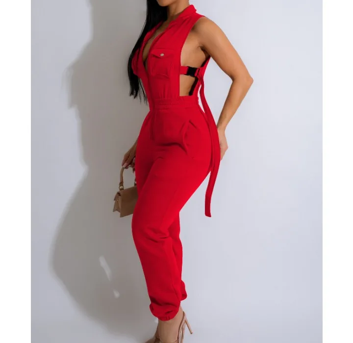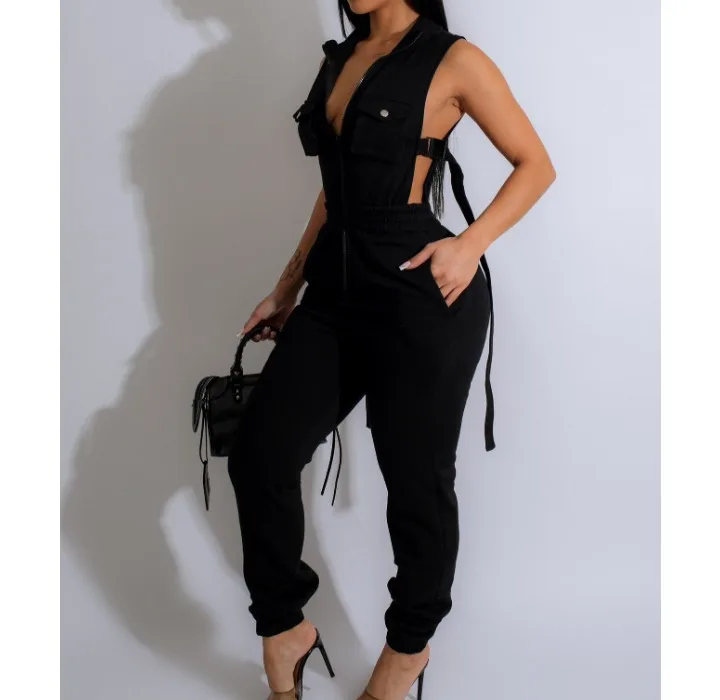 Jumpsuits for Women 2024 Summer Sexy Spicy Girl Side Button Zipper Sleeveless 4 Pocket Jumpsuit Streetwear Fashion Overalls