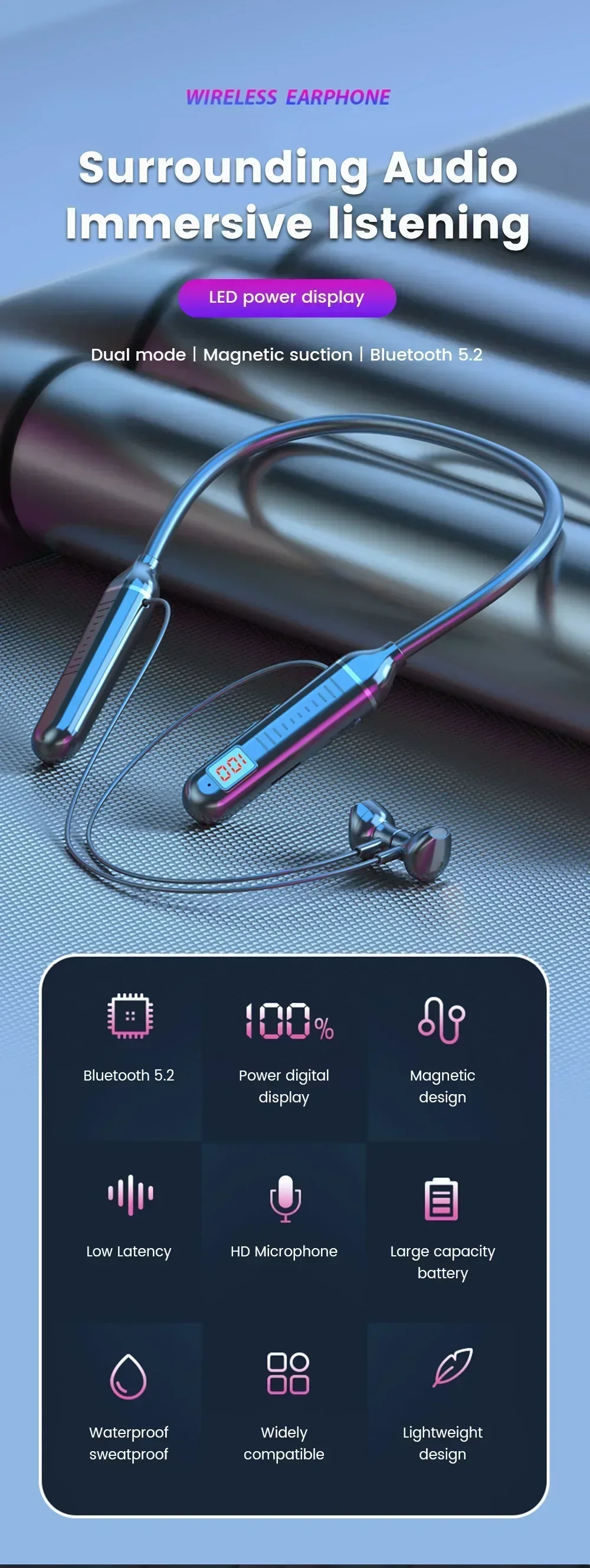 k58 pro TWS Wireless Headphones Bluetooth 5.2 Earphones Magnetic Neckband Sports Waterproof Blutooth Headset with Mic Noise Cancelling