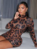 kliou Leopard Popular Women Mini Dress Hipster New Full Sleeve Stand Collar Skinny Y2K Bodycon Mujer Vintage Classic Party Frock
