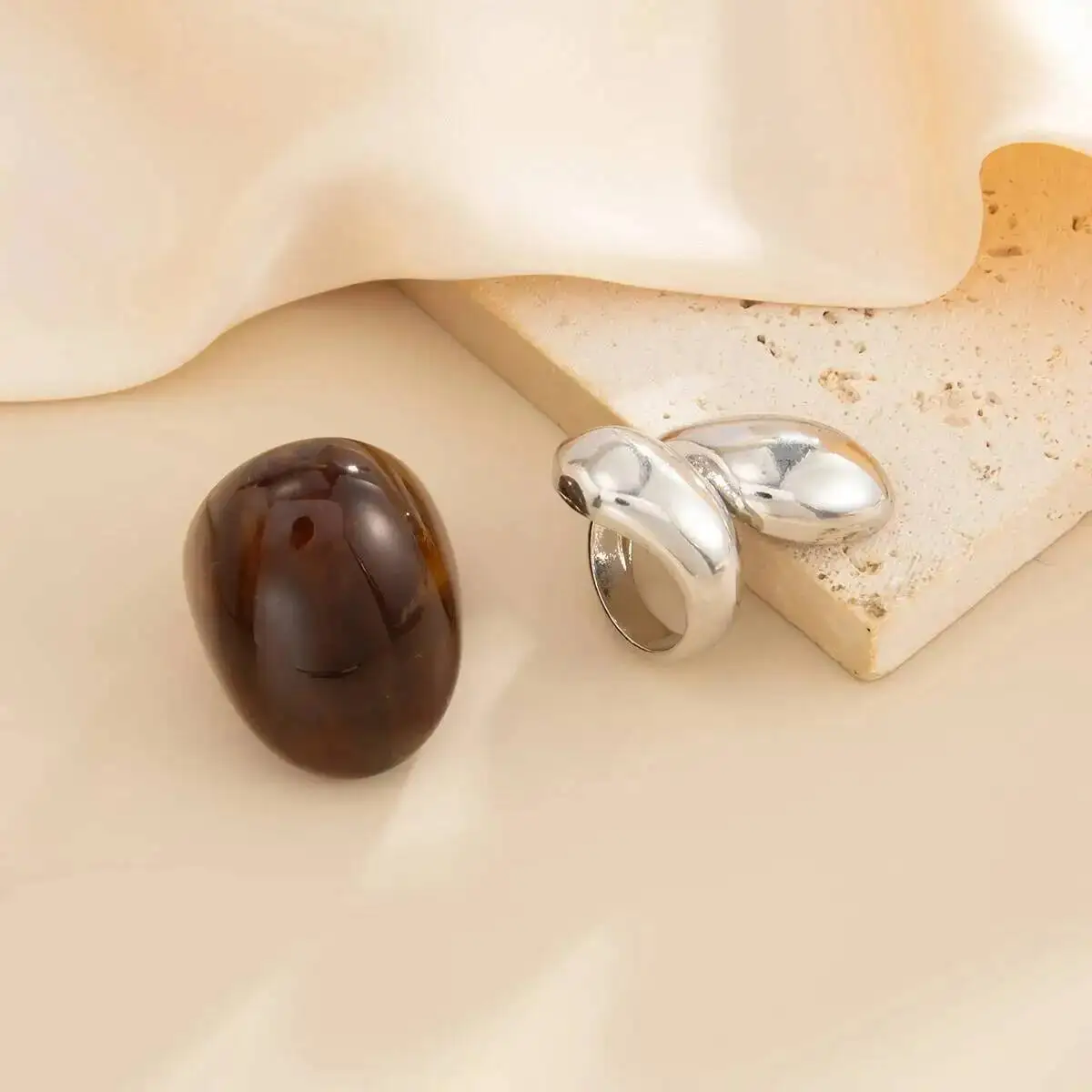 KunJoe 2Pcs/Set New Retro Metal Water Drop Acrylic Ring Women 2026 Fashion Geometric Thick Resin Knuckle Rings Set Boho Jewelry