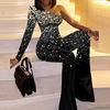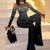Ladies Slim Flare Pants Rompers Fashion Print Clothes Sexy One-pieces Women Jumpsuit Elegant Glitter Hollow Mesh Party Bodysuits