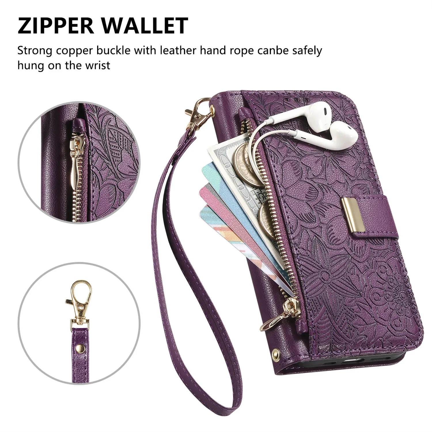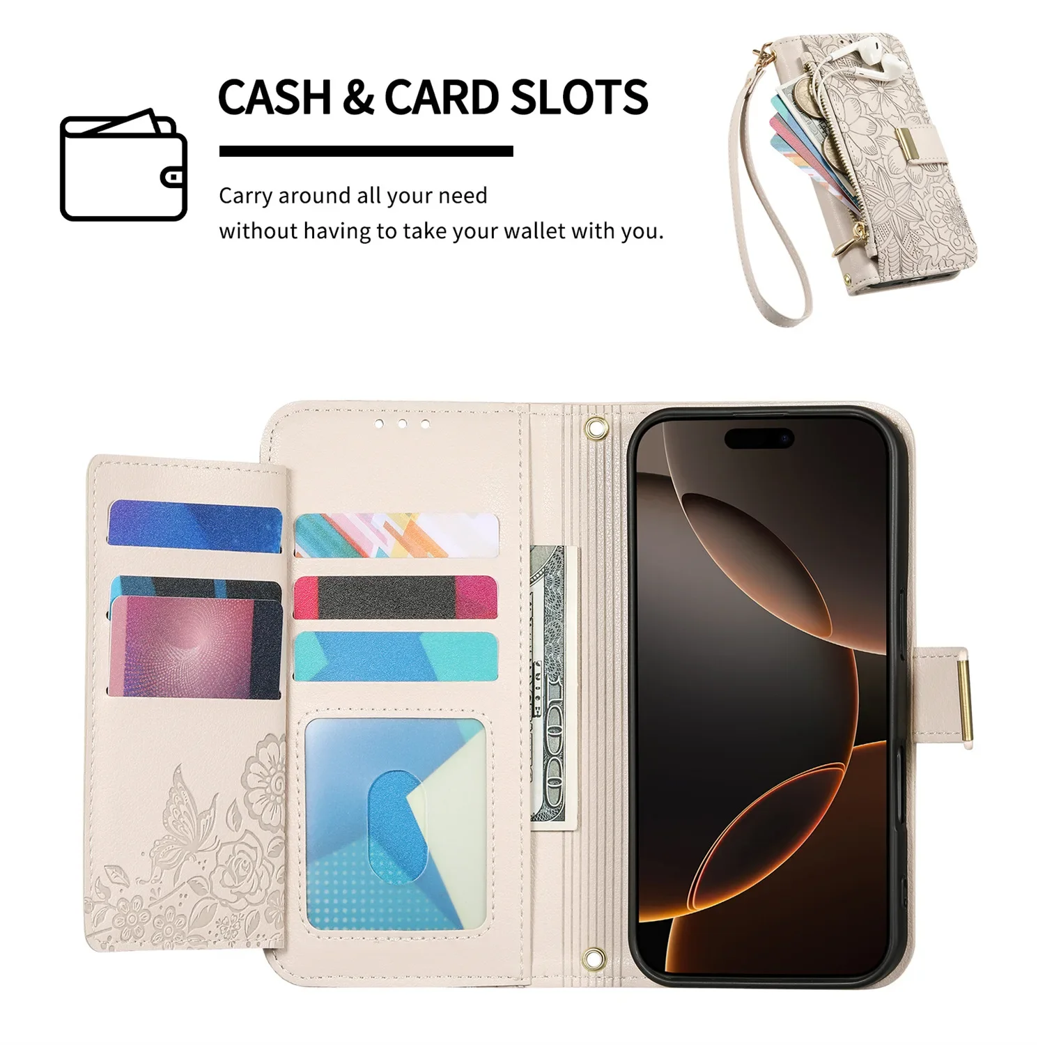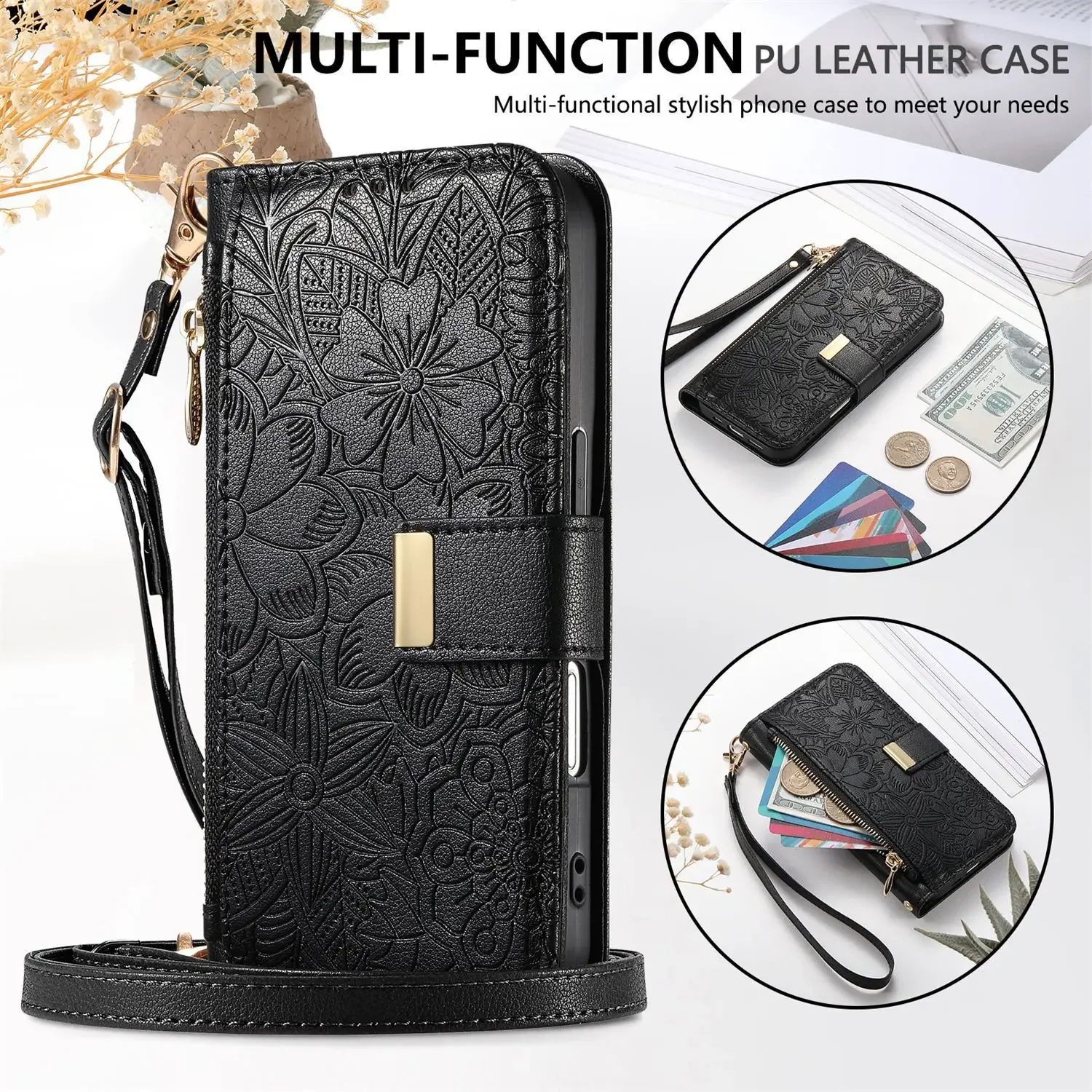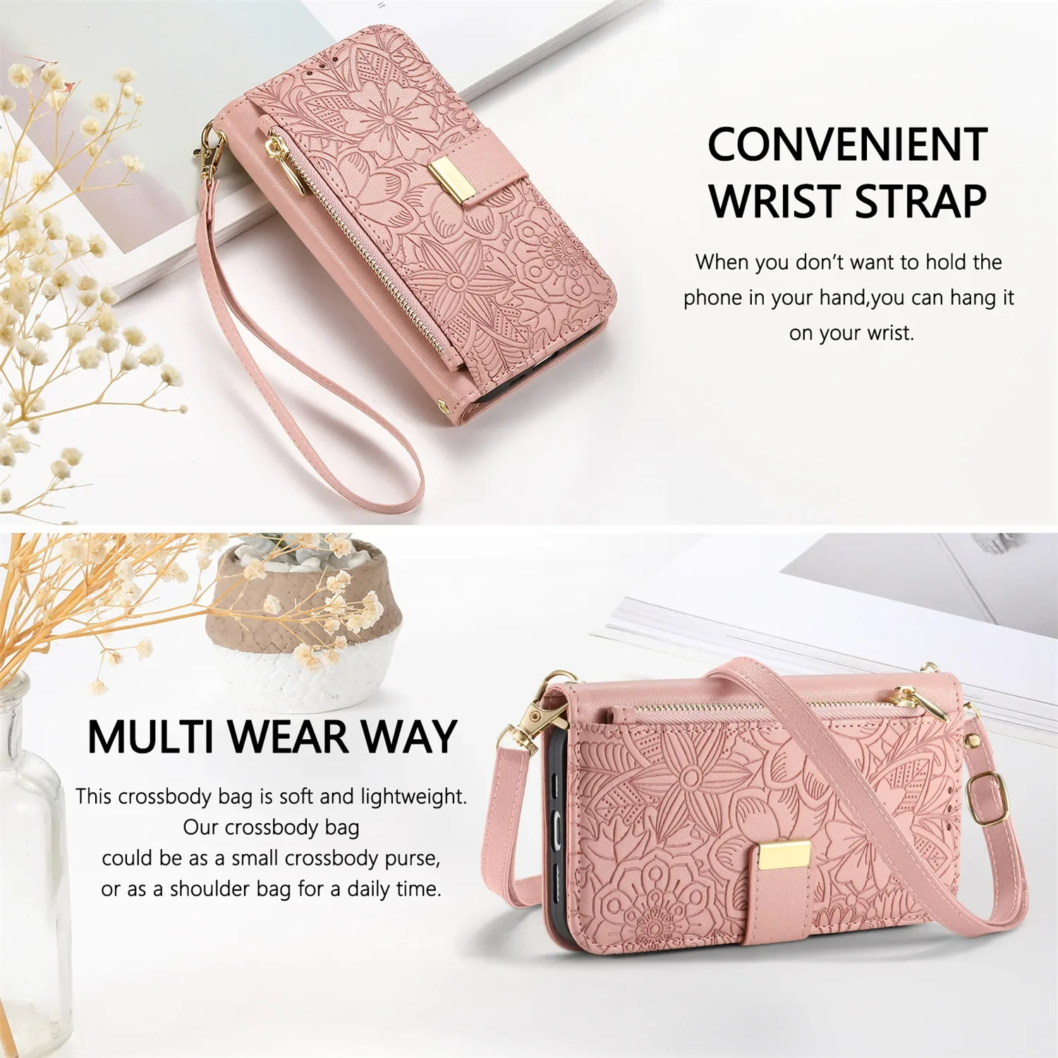 Zipper Crossbody Leather Flip Wallet Card Slot Phone Case for iPhone 16E 16 Plus 15 14 13 12 11 Pro Max Wrist strap Funda Cover