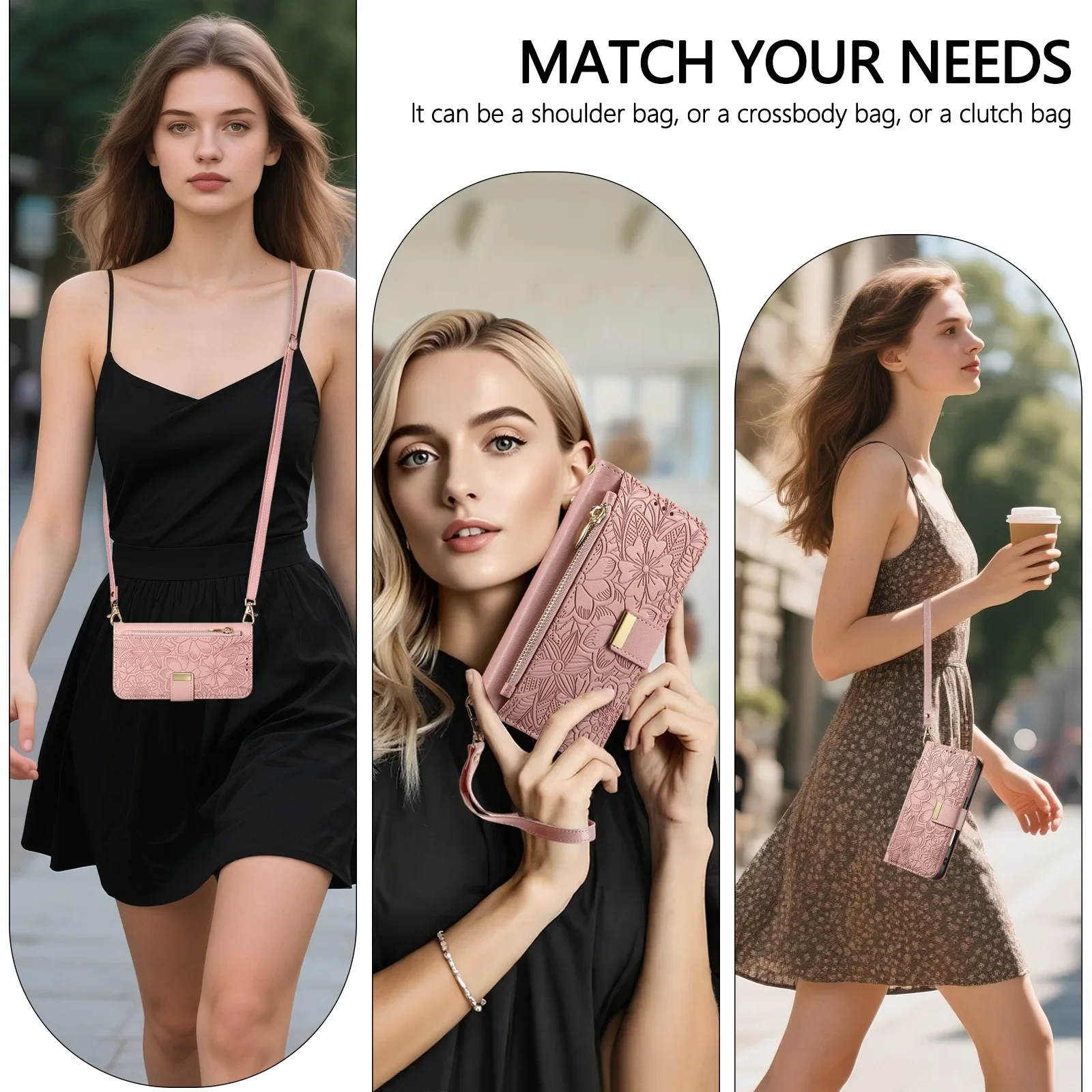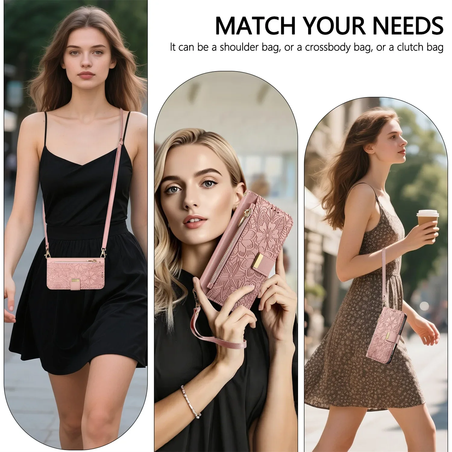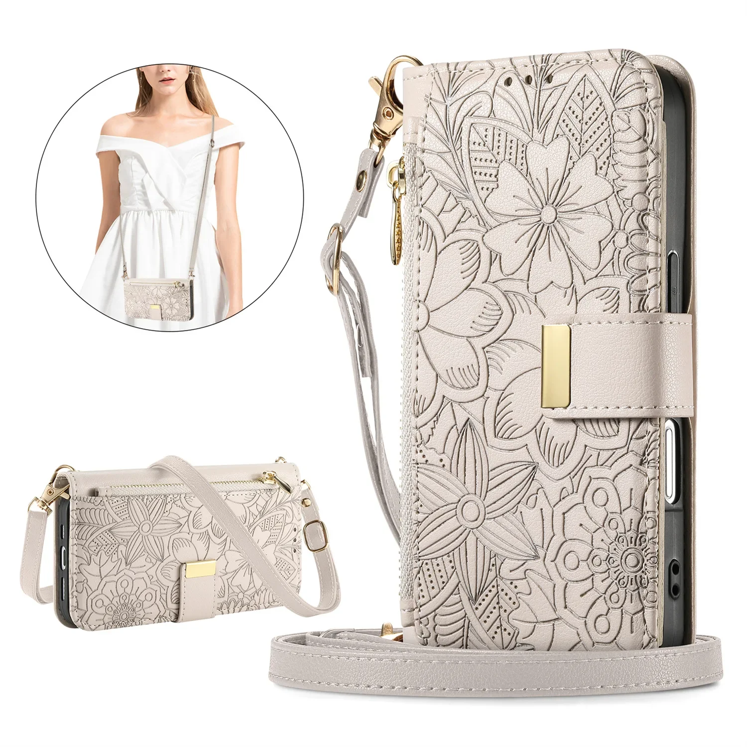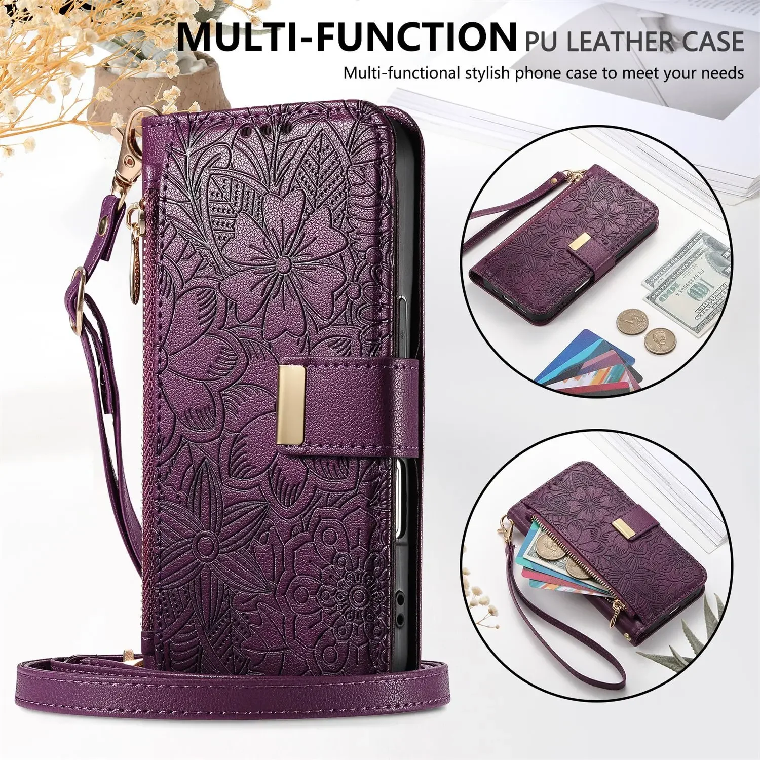 Zipper Crossbody Leather Flip Wallet Card Slot Phone Case for iPhone 16E 16 Plus 15 14 13 12 11 Pro Max Wrist strap Funda Cover